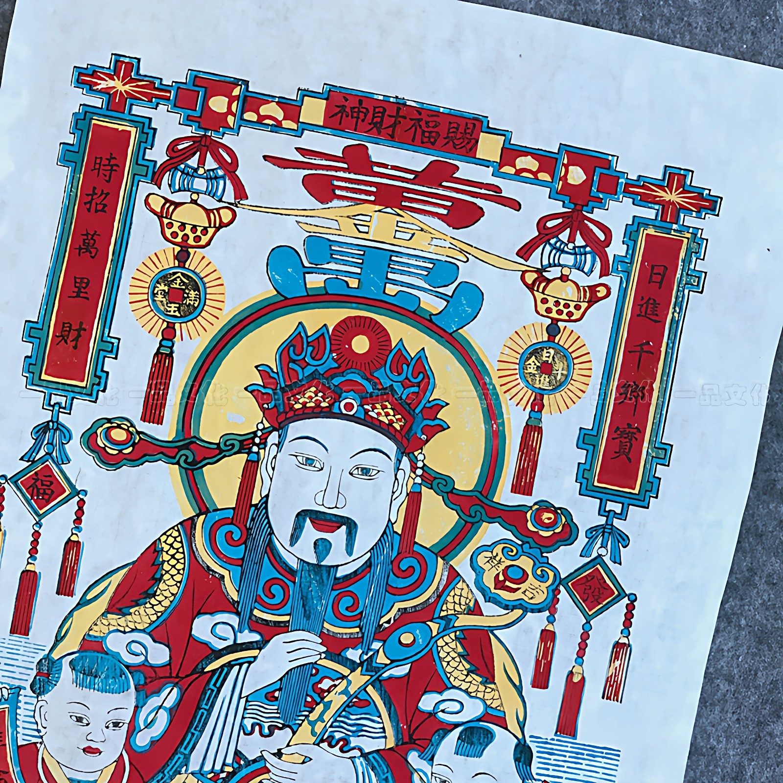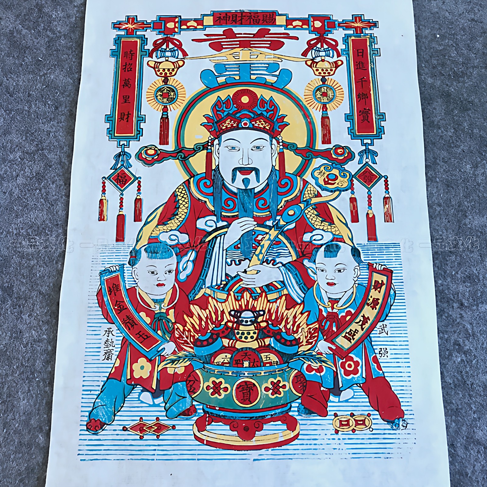 📚 正宗武强手工木版年画赐福财神大幅中堂画传统非遗中式画收藏馈赠