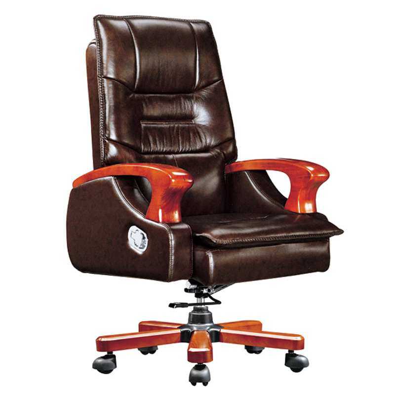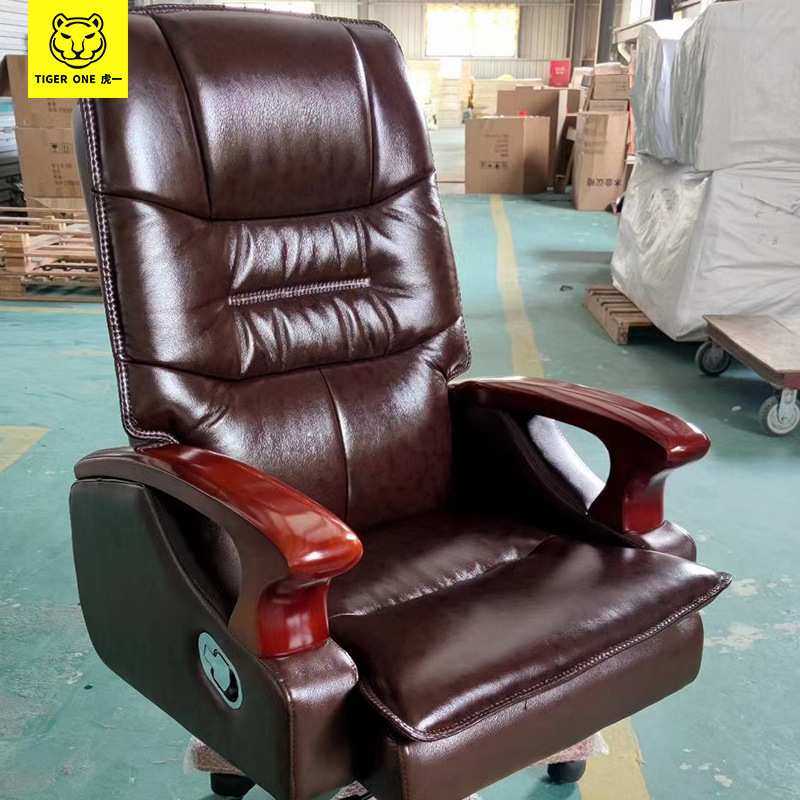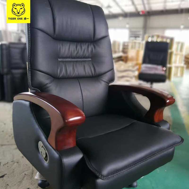 📚 虎一办公家具实木老板椅子大班台椅办公椅电脑转椅真皮可后躺橡木