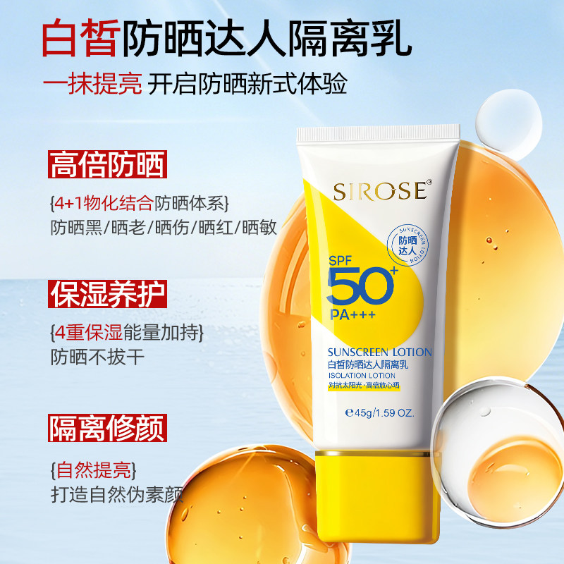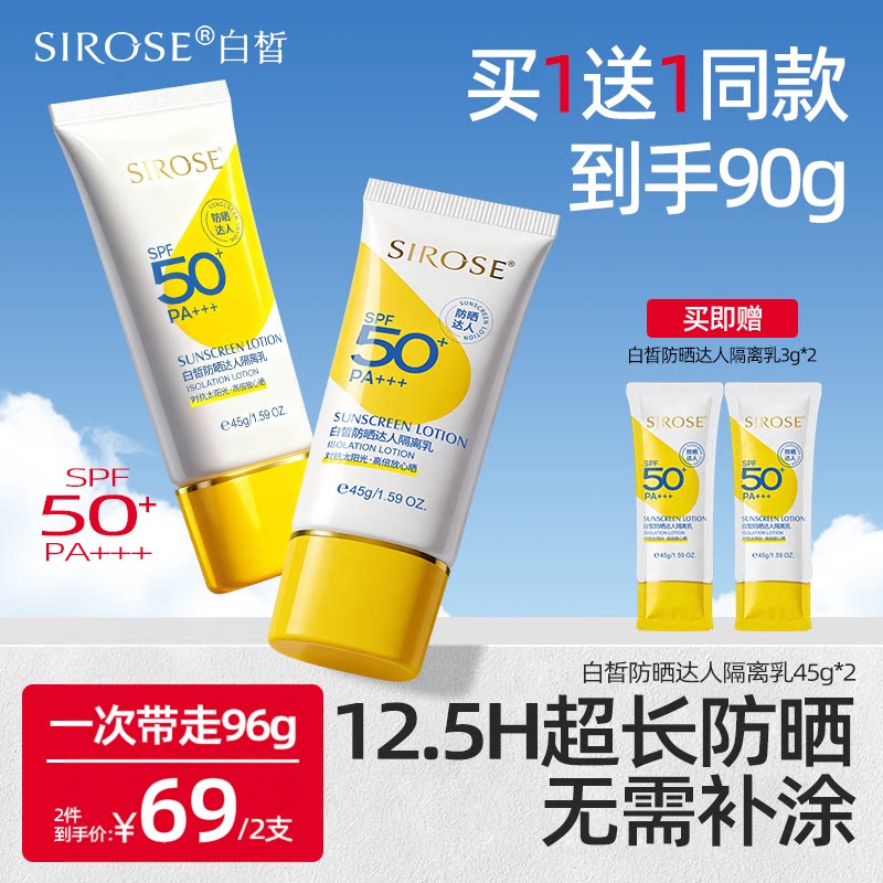📚 白皙防晒达人隔离乳SPF50倍防紫外线超长防晒面部身体清爽不油腻