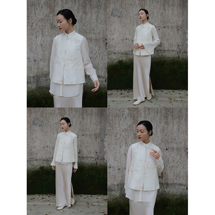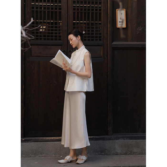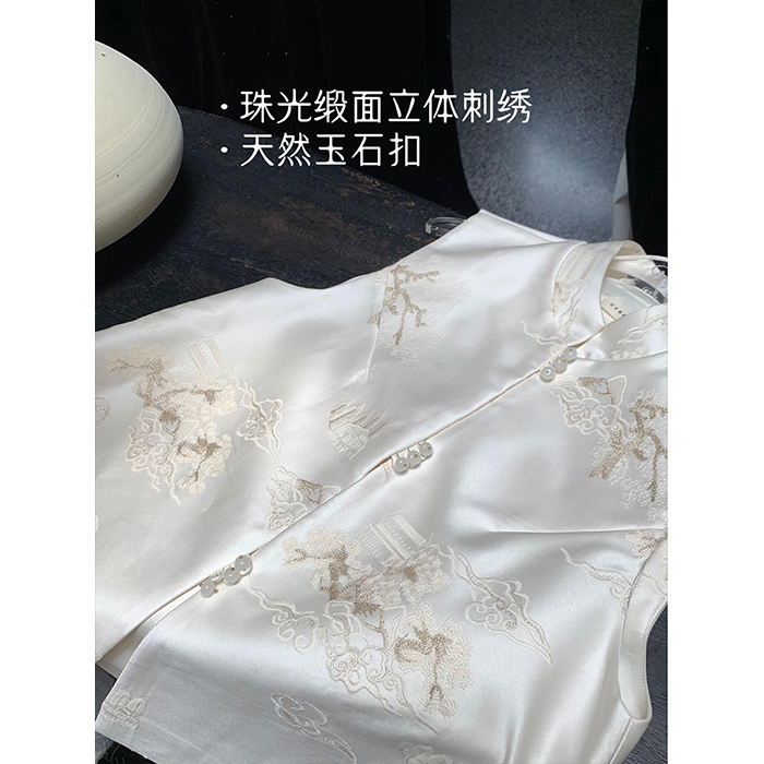 📚 小鹿弥雅《玉楼春》原创设计新中式缎面刺绣玉石扣马甲春秋