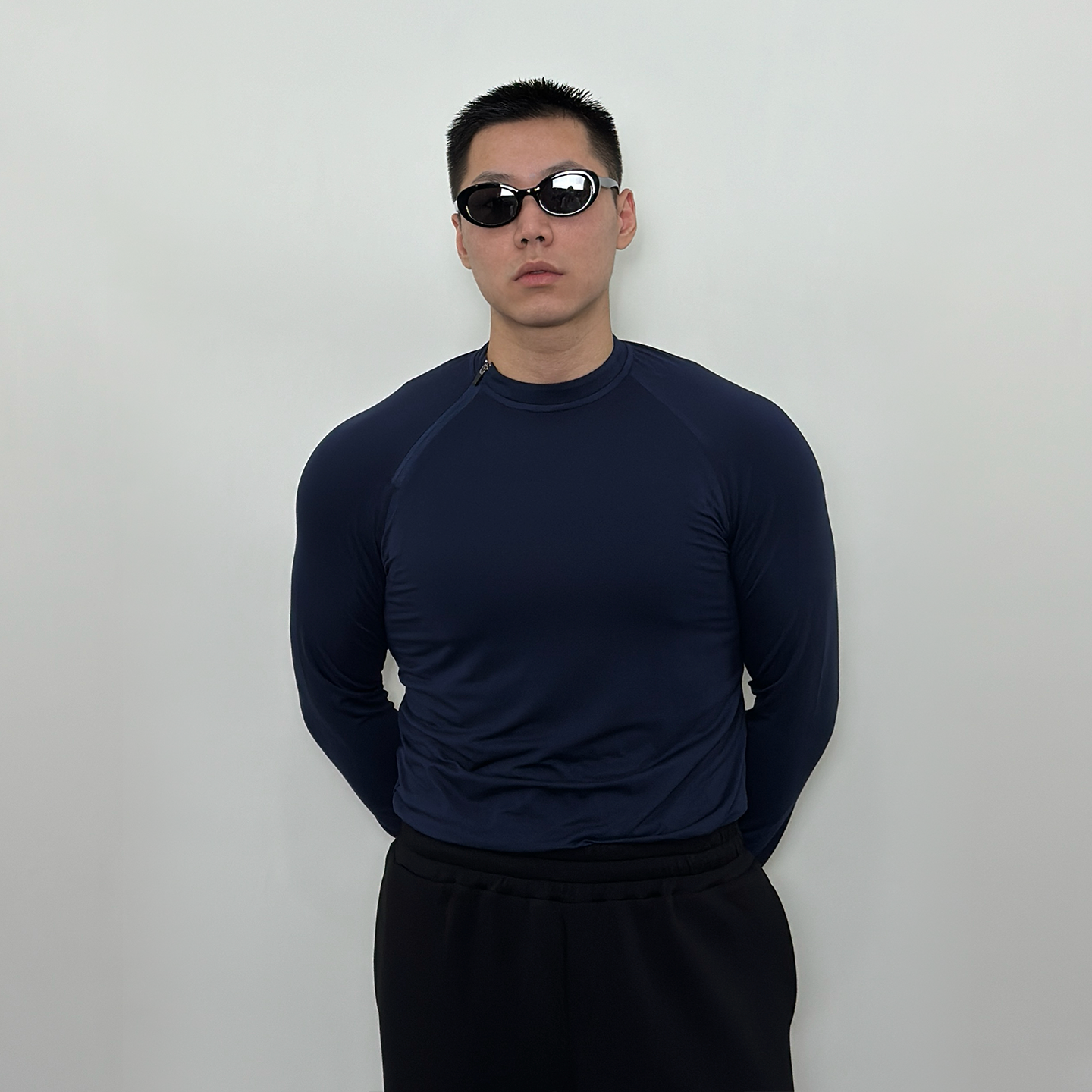 📚 Roast lucky秋季斜拉链紧身高弹力长袖 男款运动健身休闲打底T恤