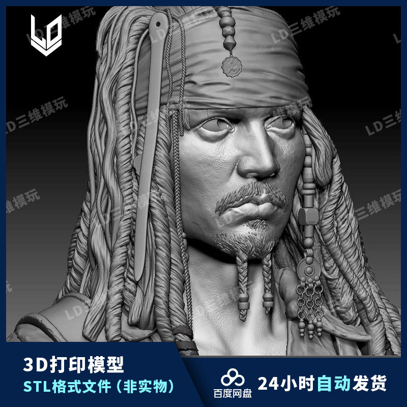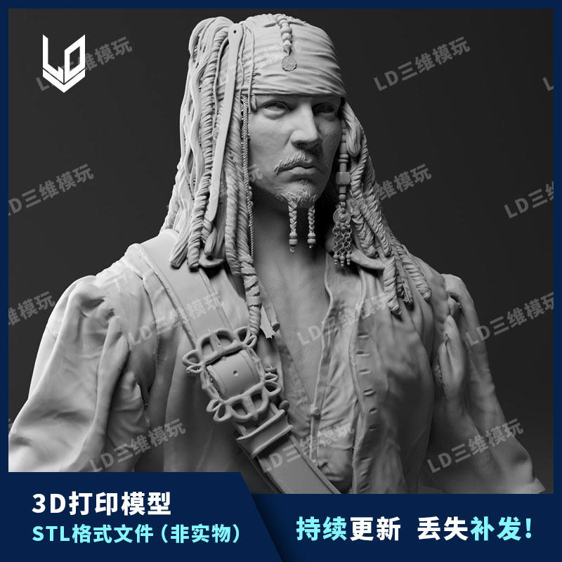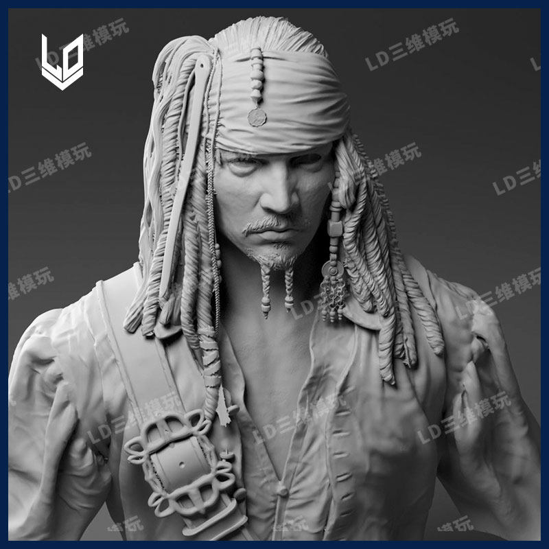 📚 加勒比海盗杰克船长约翰尼德普3D打印模型图纸 精雕圆雕图STL文件