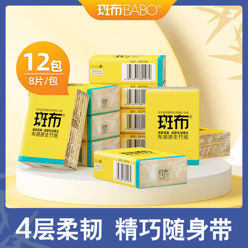 📚 斑布手帕纸竹纤维竹浆本色纸巾餐巾纸班布原浆小包随身装便携式