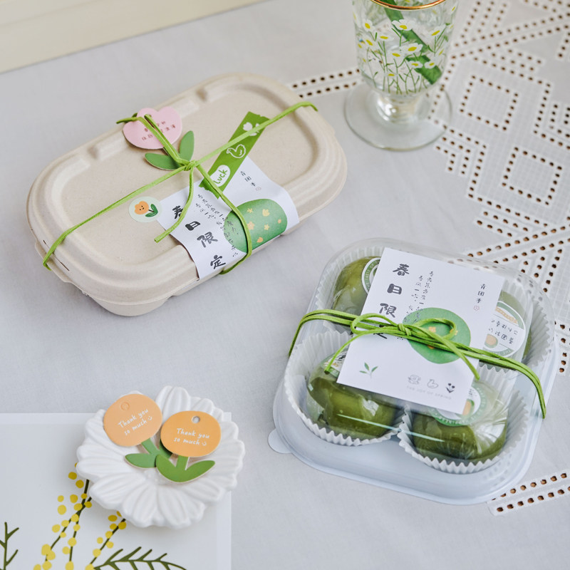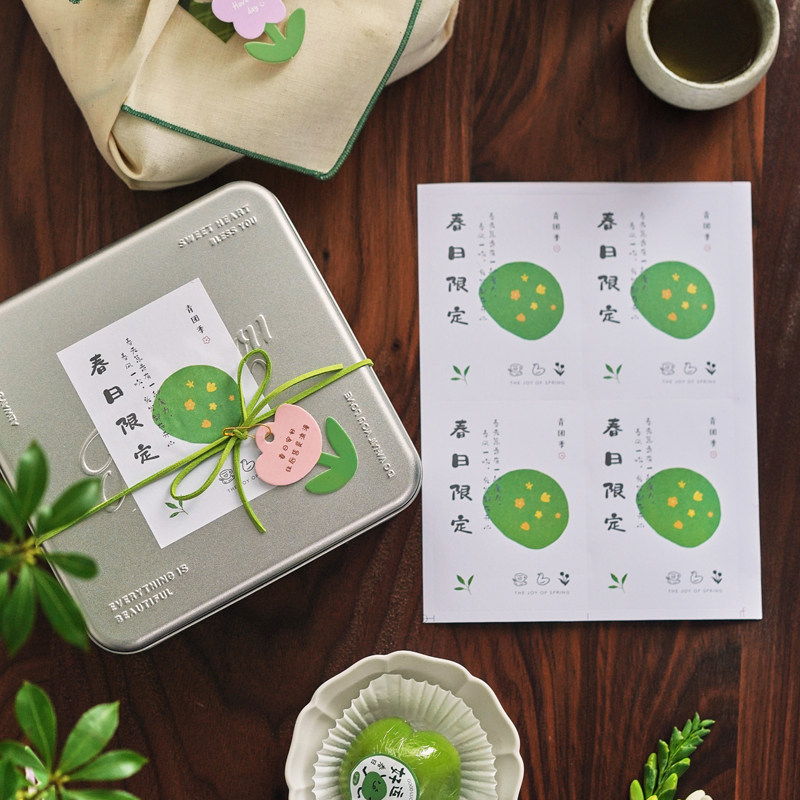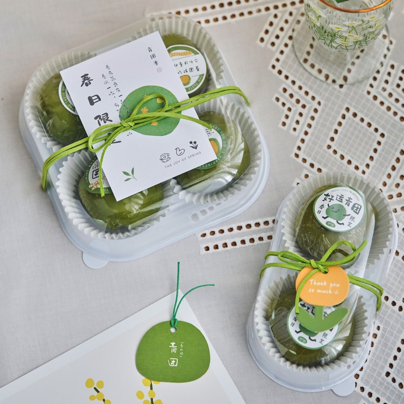 📚 2026新款手绘青团贴纸不干胶烘焙清明果子包装礼盒子搭配定制logo