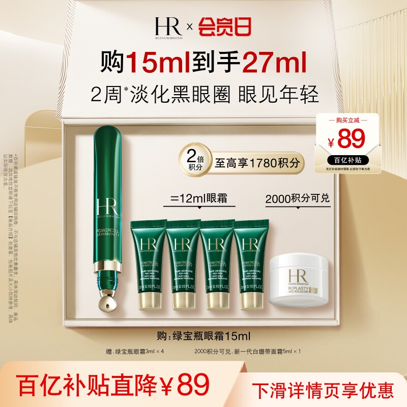89¥ CZ356 Cw1d57U2tUw¥ https://m.tb.cn/h.iqB5ODe 【官旗】赫莲娜绿宝瓶眼霜淡化黑眼圈细纹熬夜眼精华护肤礼物 --------------------- 【原售价】890元 【现售价】890元。