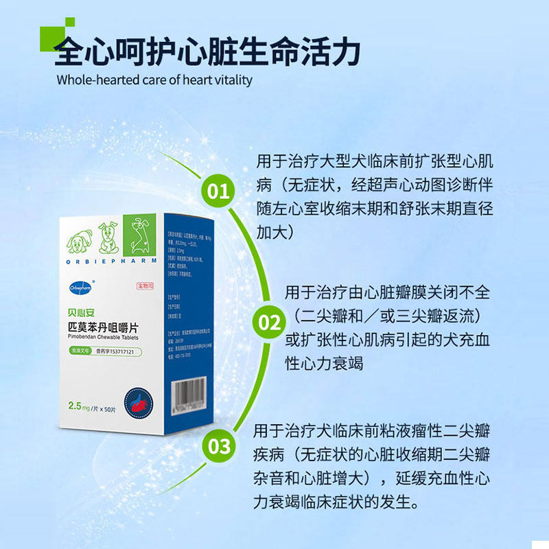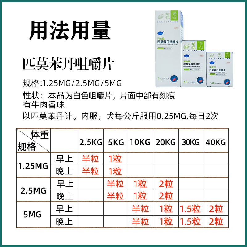 📚 宠物匹莫苯丹咀嚼片欧博方贝心安狗心脏药犬心脏肥大1.25mg2.5mg5