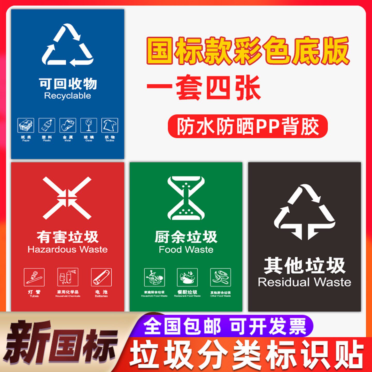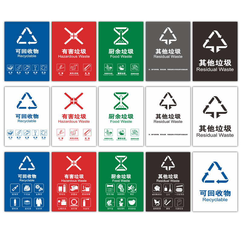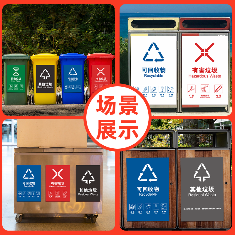 📚 垃圾分类标识贴纸可回收不可回收垃圾箱指示牌有害厨余易腐垃圾桶分类干湿垃圾分类提示牌危险医疗废物标签