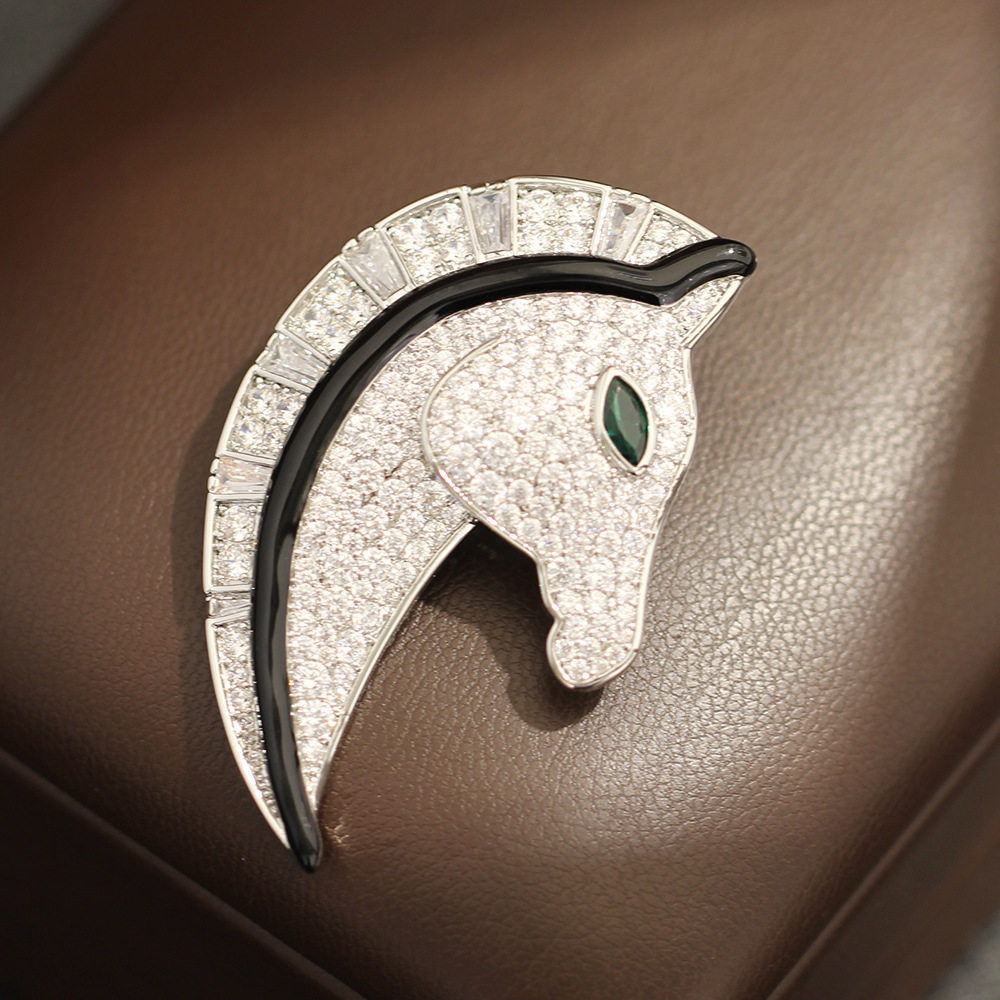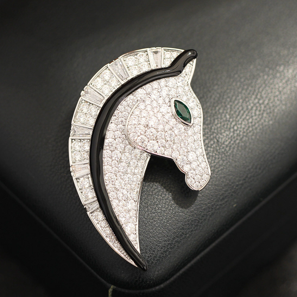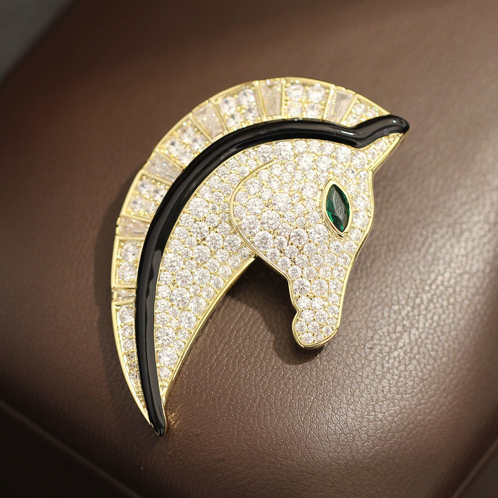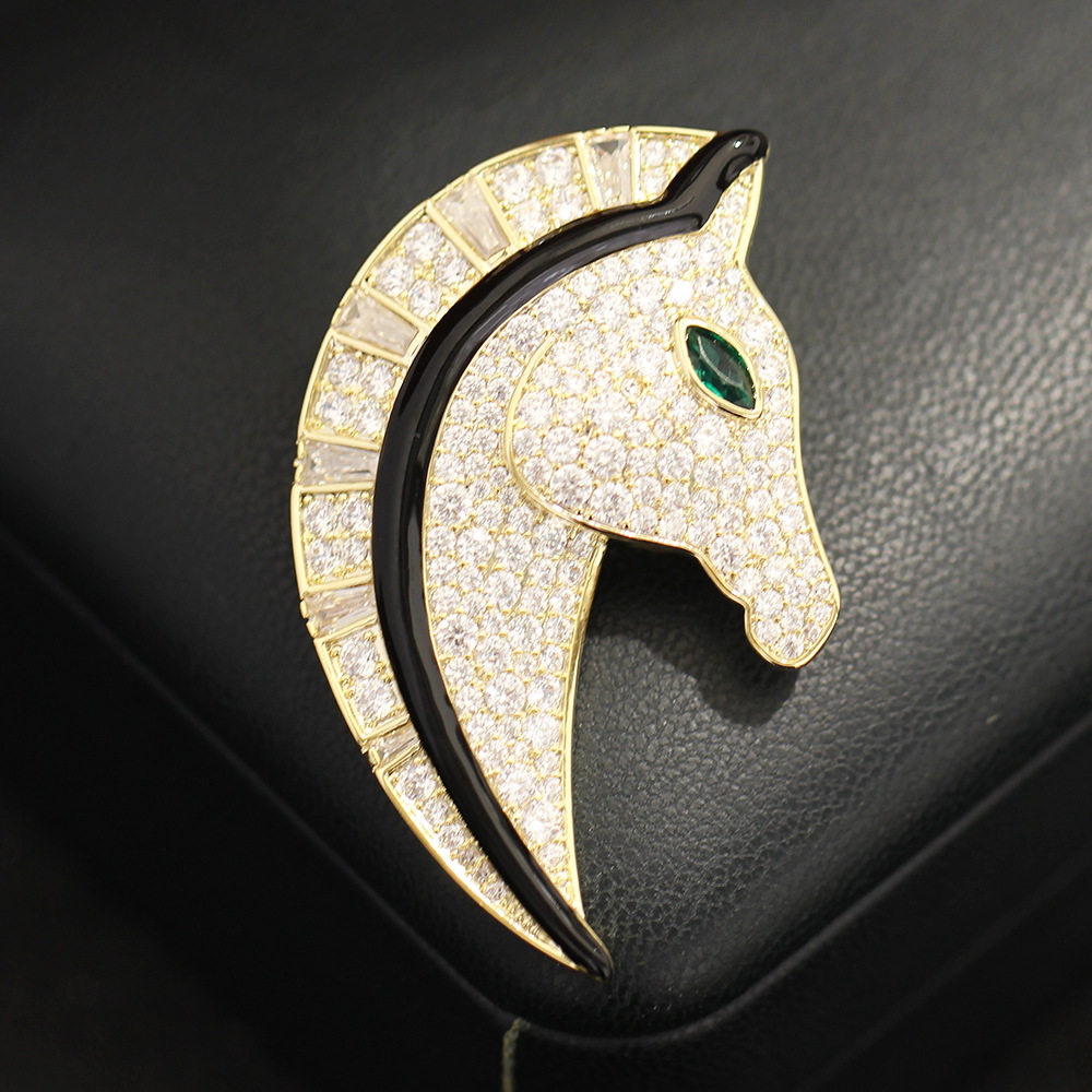 📚 本命年生肖马首胸针个性滴油微镶锆石马到成功动物别针防走光男女