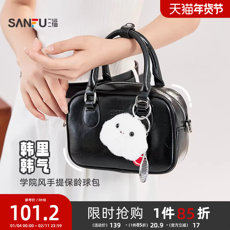 📚 三福包包女款日常通勤百搭波士顿包保龄球包手提包小拎包上班杂物