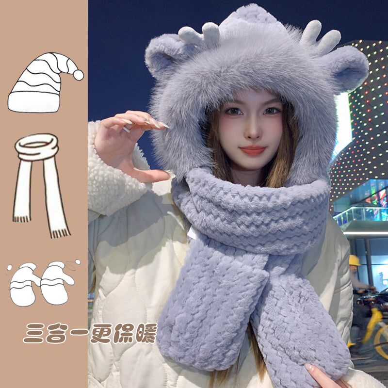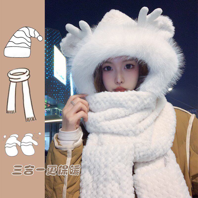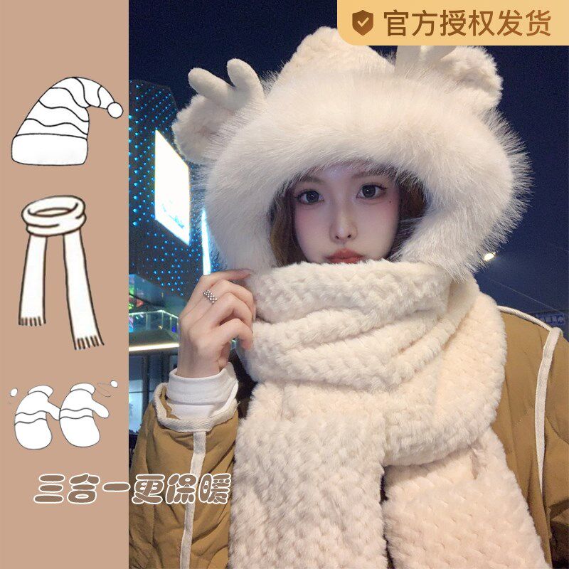 📚 帽子女2024新款冬季帽子围巾一体围脖帽子围巾手套三件套秋冬百搭