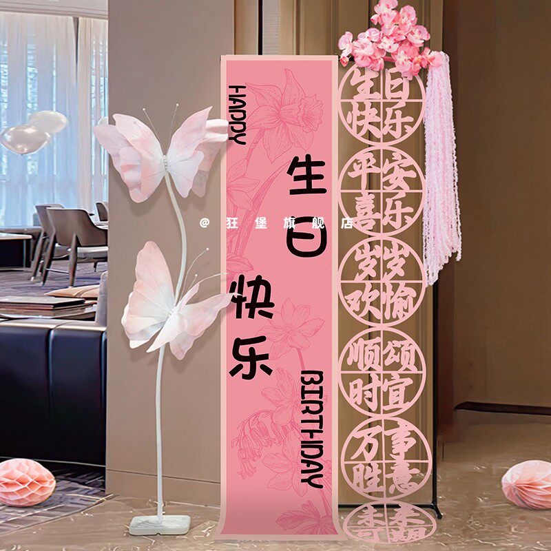 📚 生日场景布置装饰女孩周岁迎宾牌路引定制氛围感拍照道具10岁挂布
