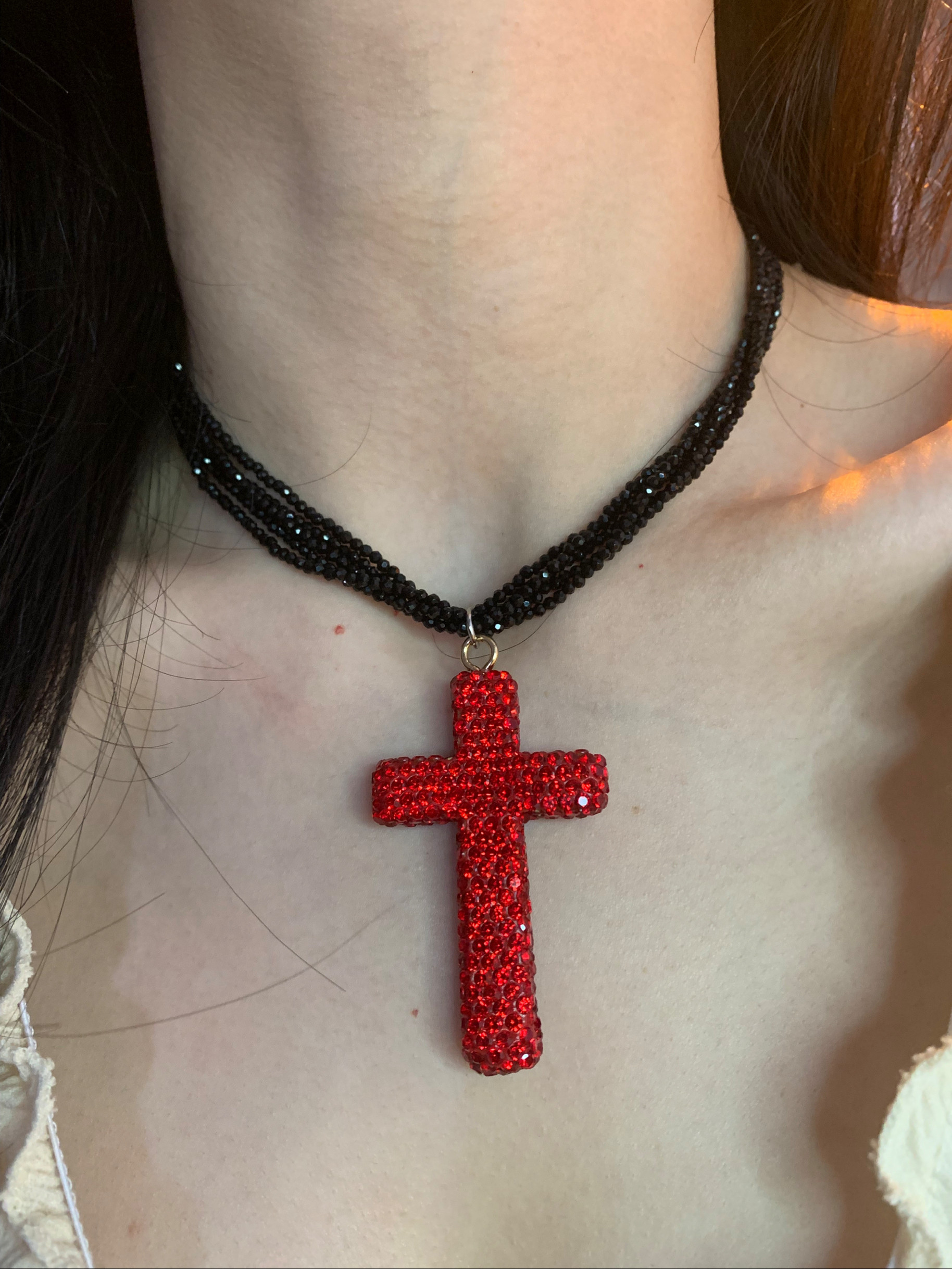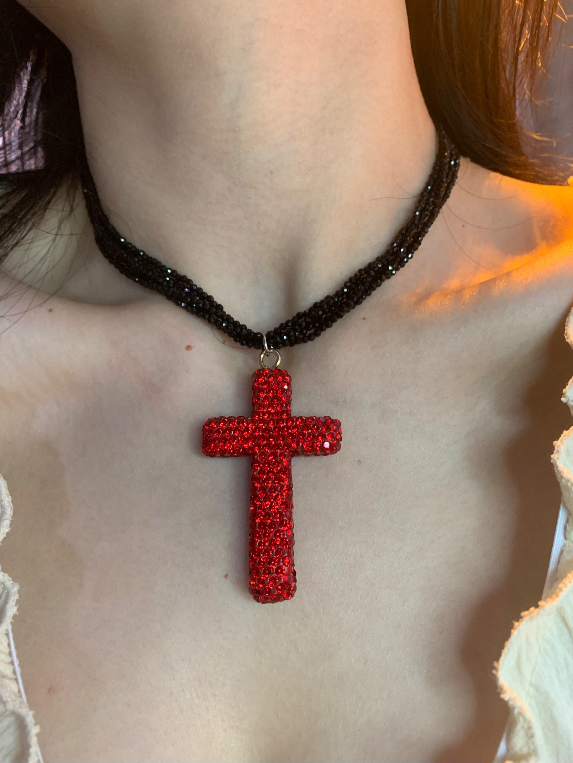 28¥ HU108 WDO8UQhztLf¥ https://m.tb.cn/h.7HIifTJ 轻奢版 正红微镶钻大十字架项链女Y2K辣妹亚比卫衣项链甜酷毛衣链 --------------------- 【原售价】39元 【现售价】39元。