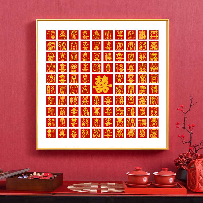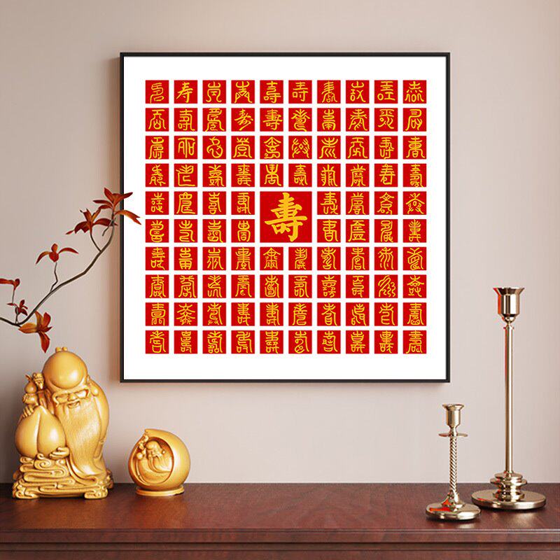 📚 盈浩创意铝合金框百喜图百寿图百福图福字挂画画框批发新中式装饰