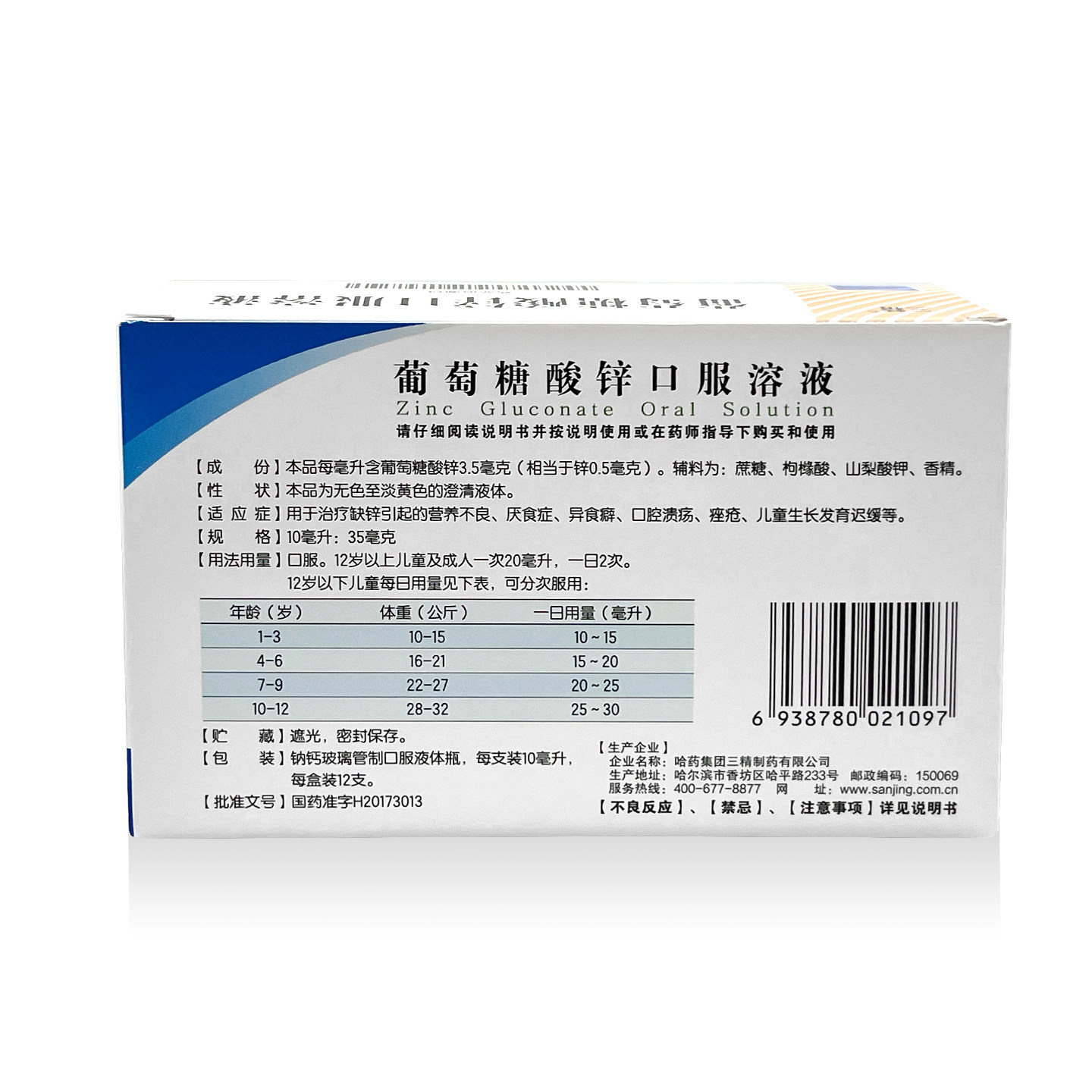 📚 三精 葡萄糖酸锌口服溶液10ml*12支 儿童缺锌引起的生长发育迟缓