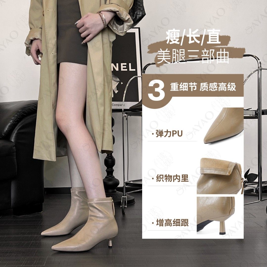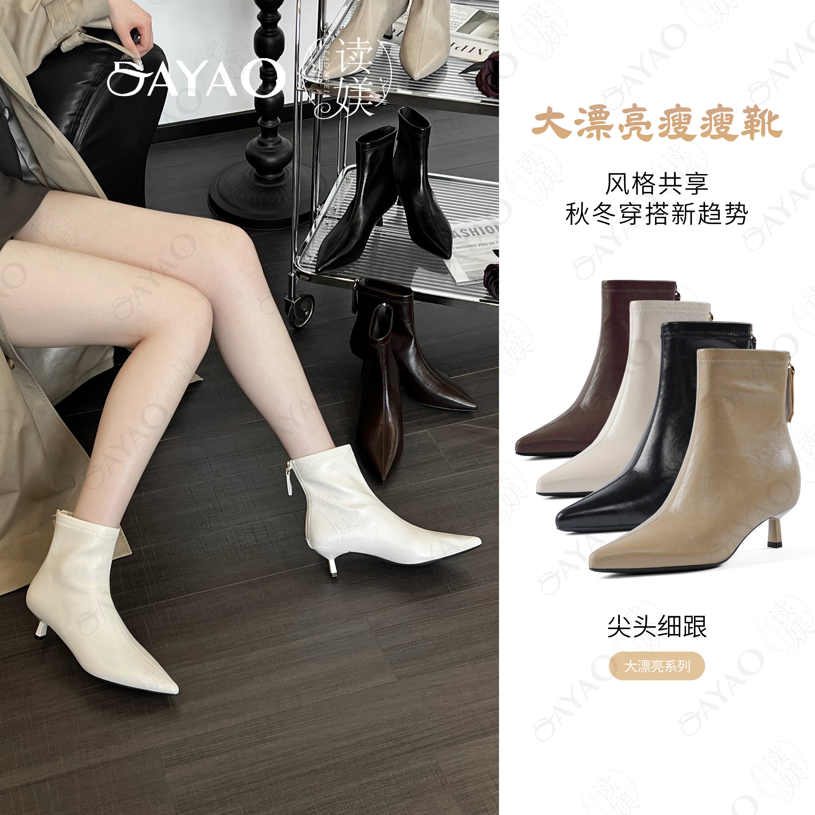 📚 大尧《大漂亮》3cm皮面短靴尖头细跟瘦瘦靴女软底舒适高跟81592
