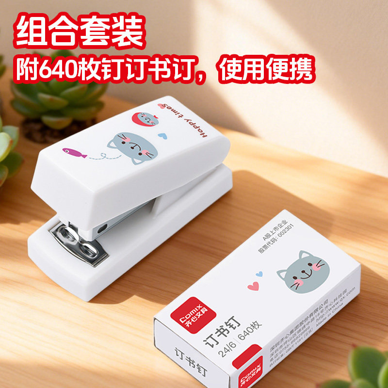 📚 齐心订书机迷你订书机起钉器小号学生用可爱装订桌面装订方便携带草稿装订订书机文具用品高颜值ins风订书机
