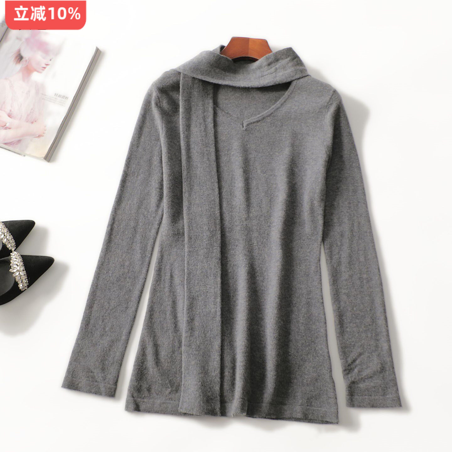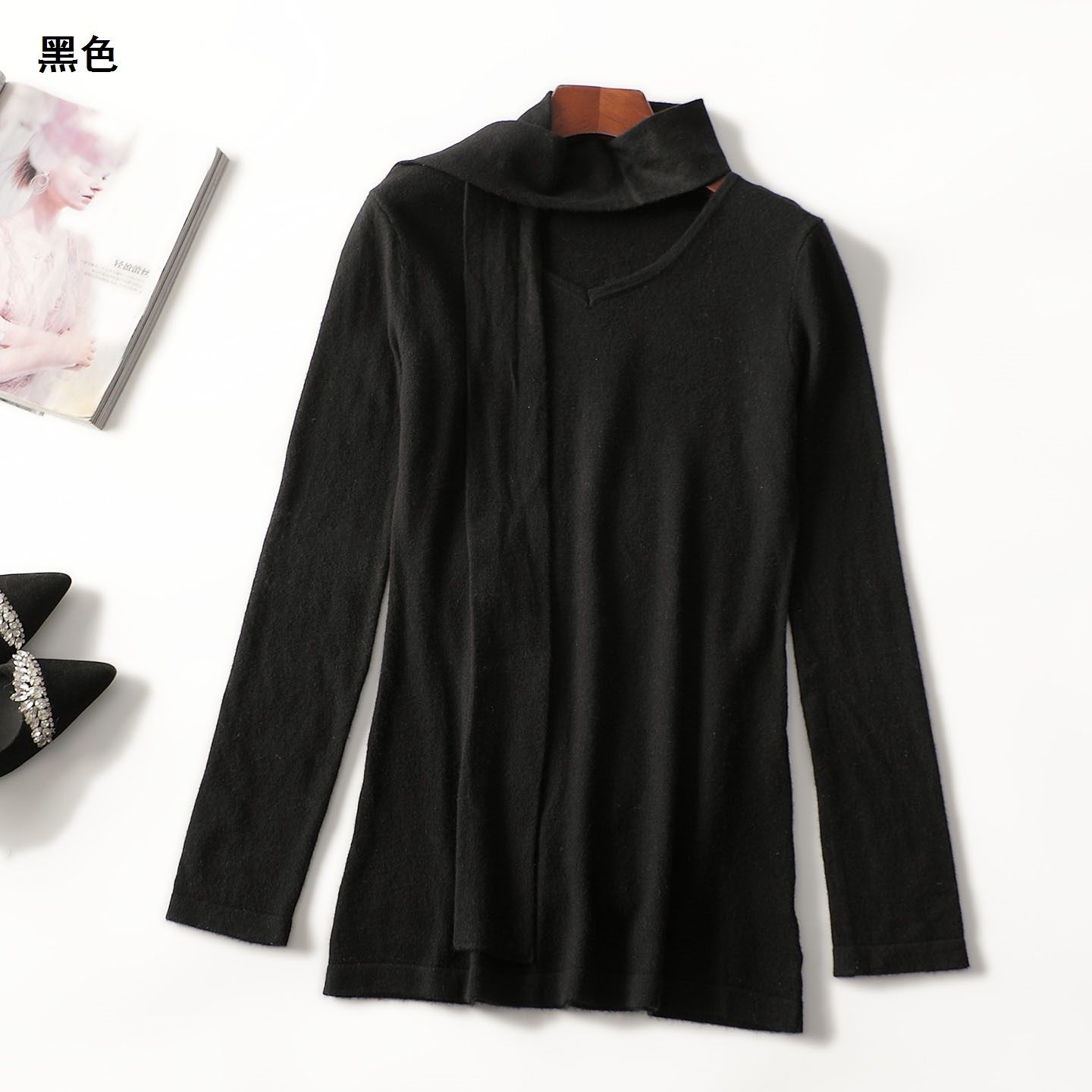 📚 412838超值精致女装女人味全羊毛毛衣秋中长款套头长袖针织衫
