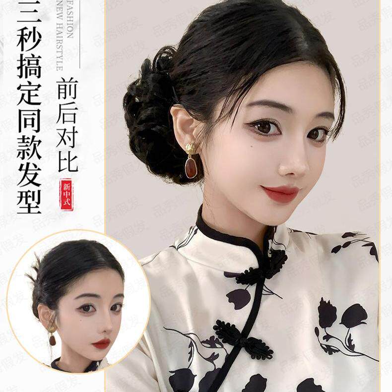 📚 民国风旗袍走秀盘头假发仿真短卷发新娘盘发包蓬松发髻拉花复古头