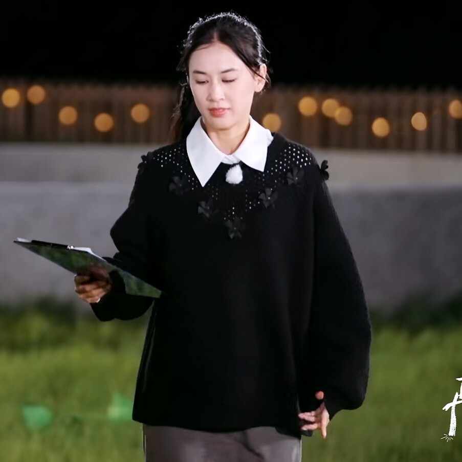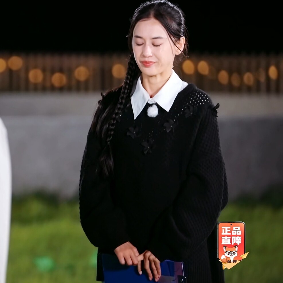 📚 欧洲再见爱人4黄圣依同款毛衣圆领长袖黑色针织衫上衣女衣服潮