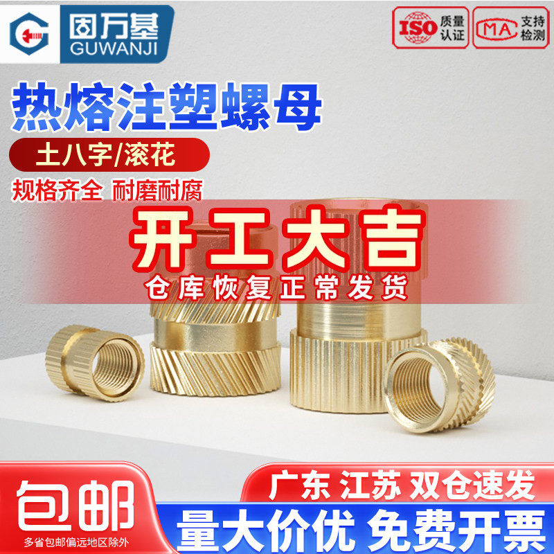 📚 注塑热熔铜螺母M2M3通孔滚花螺帽土八字预埋铜嵌件铜花母M4M5M6M8