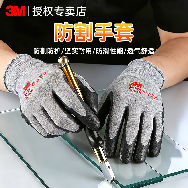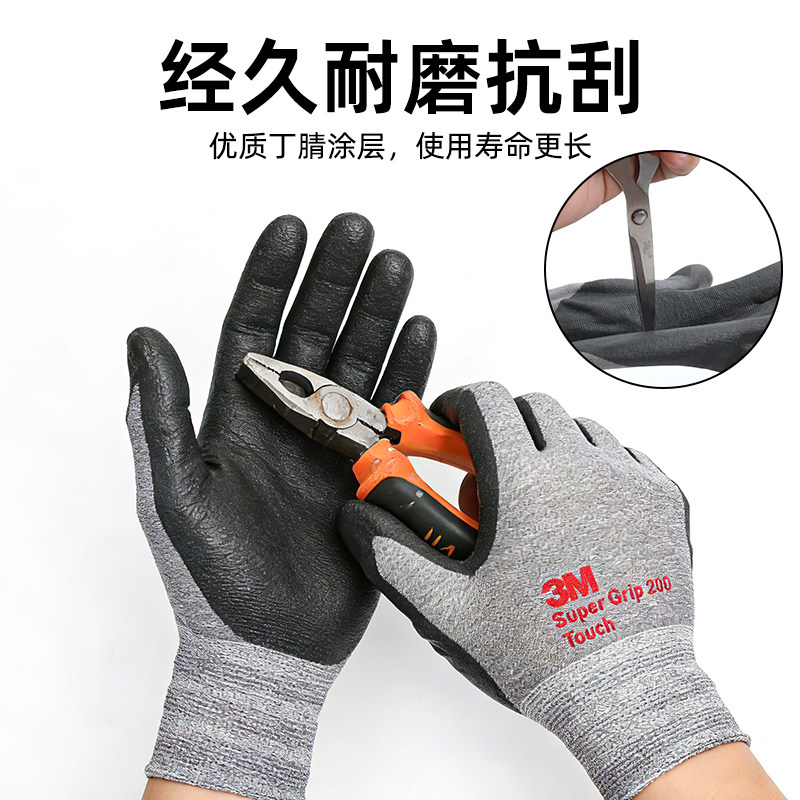 📚 3M舒适型防滑耐磨手套工作手套丁腈涂层劳保防割透气工业防护手套