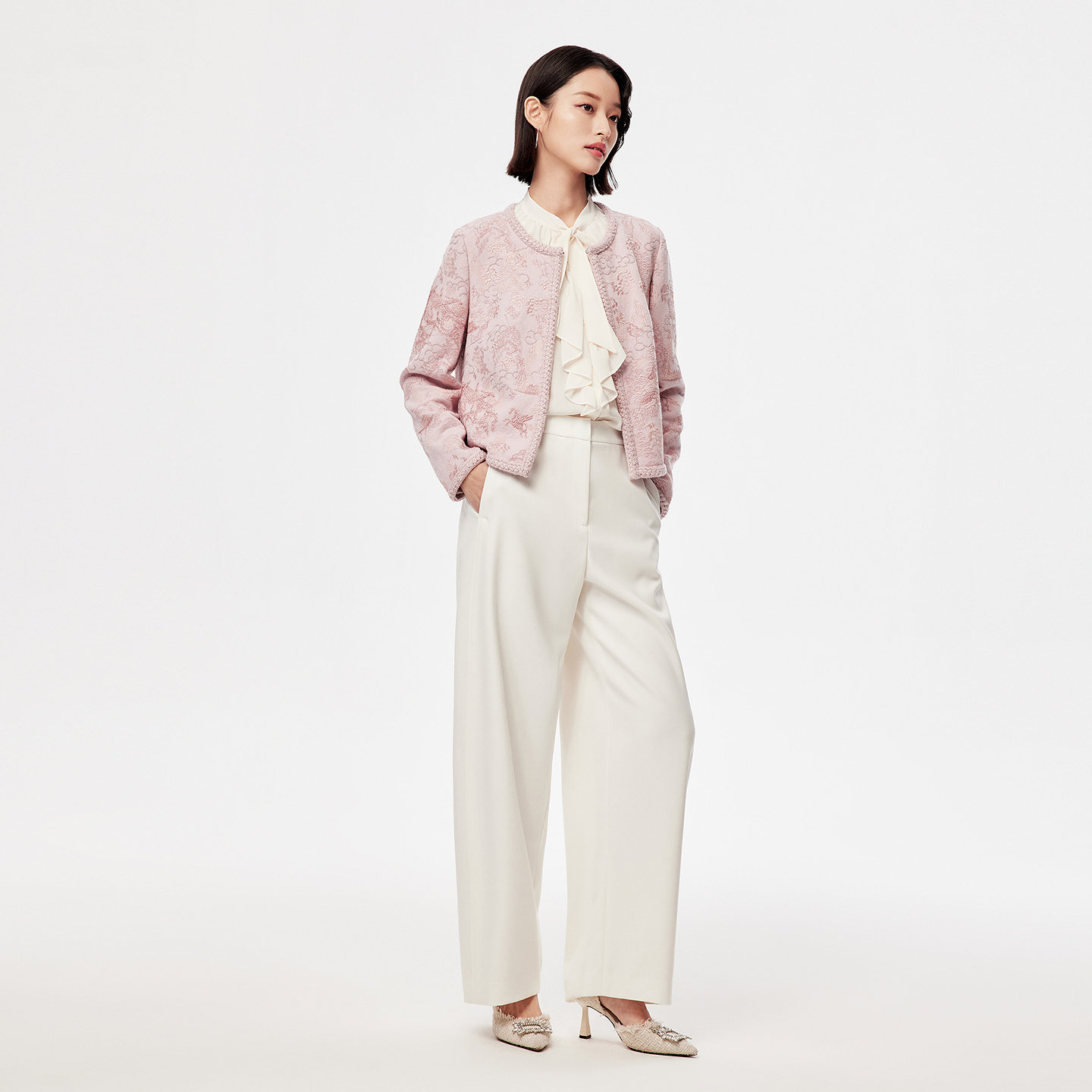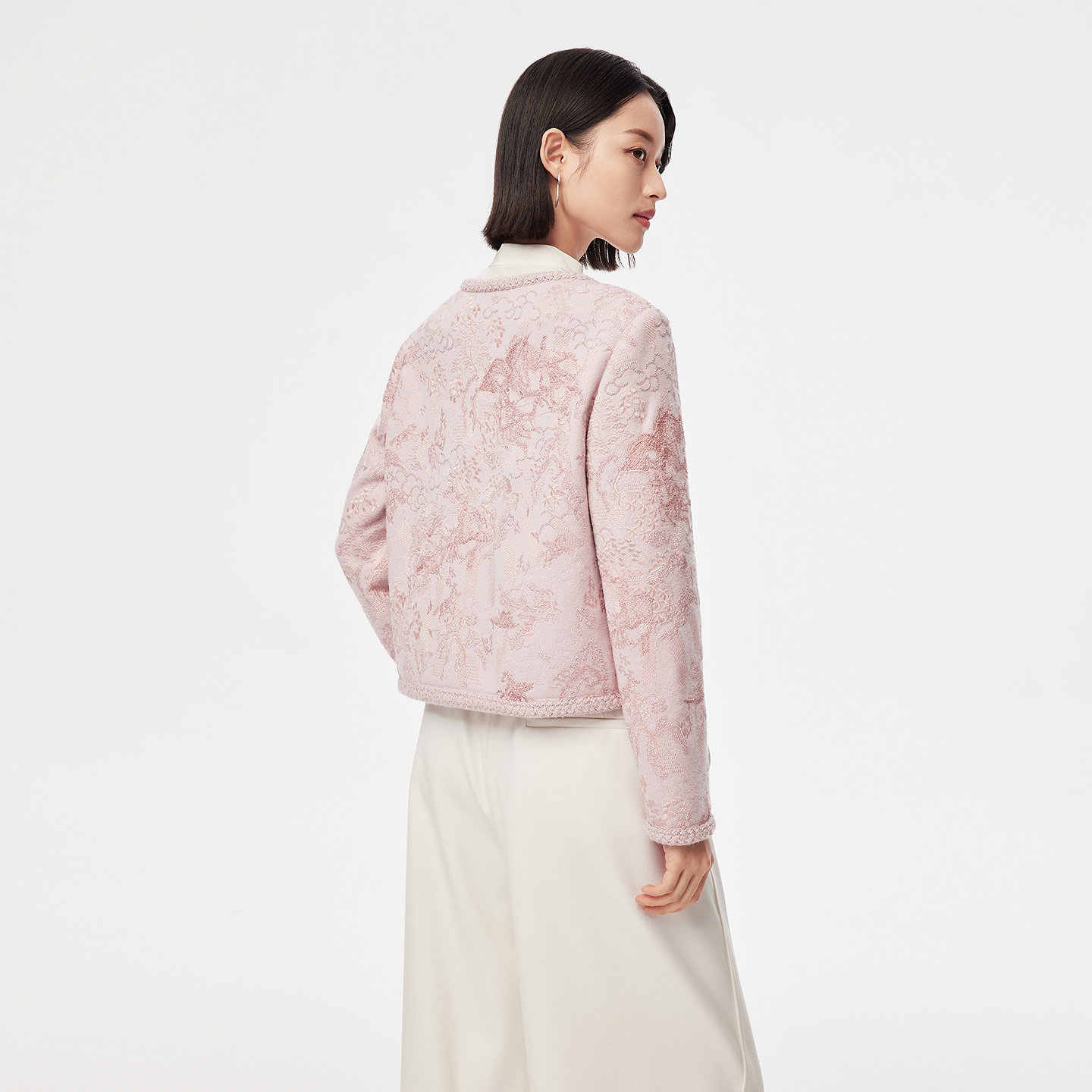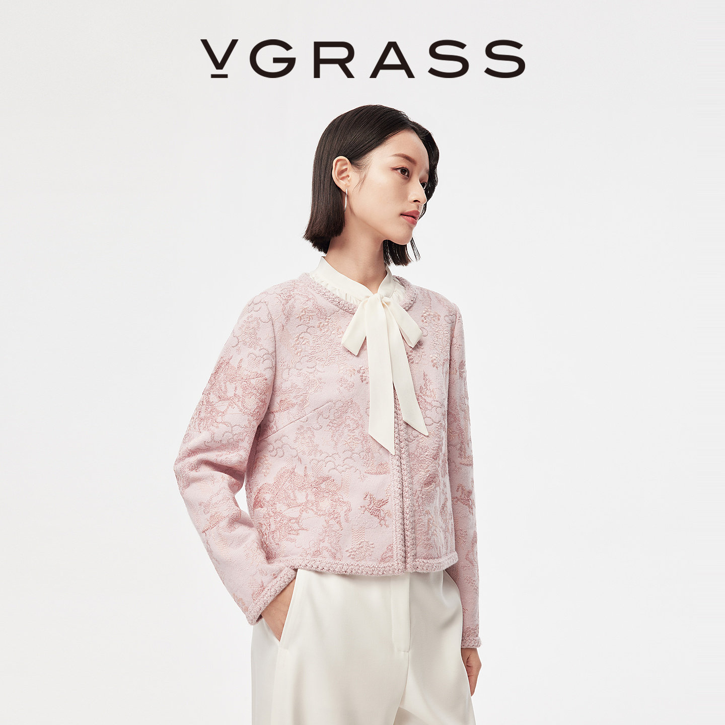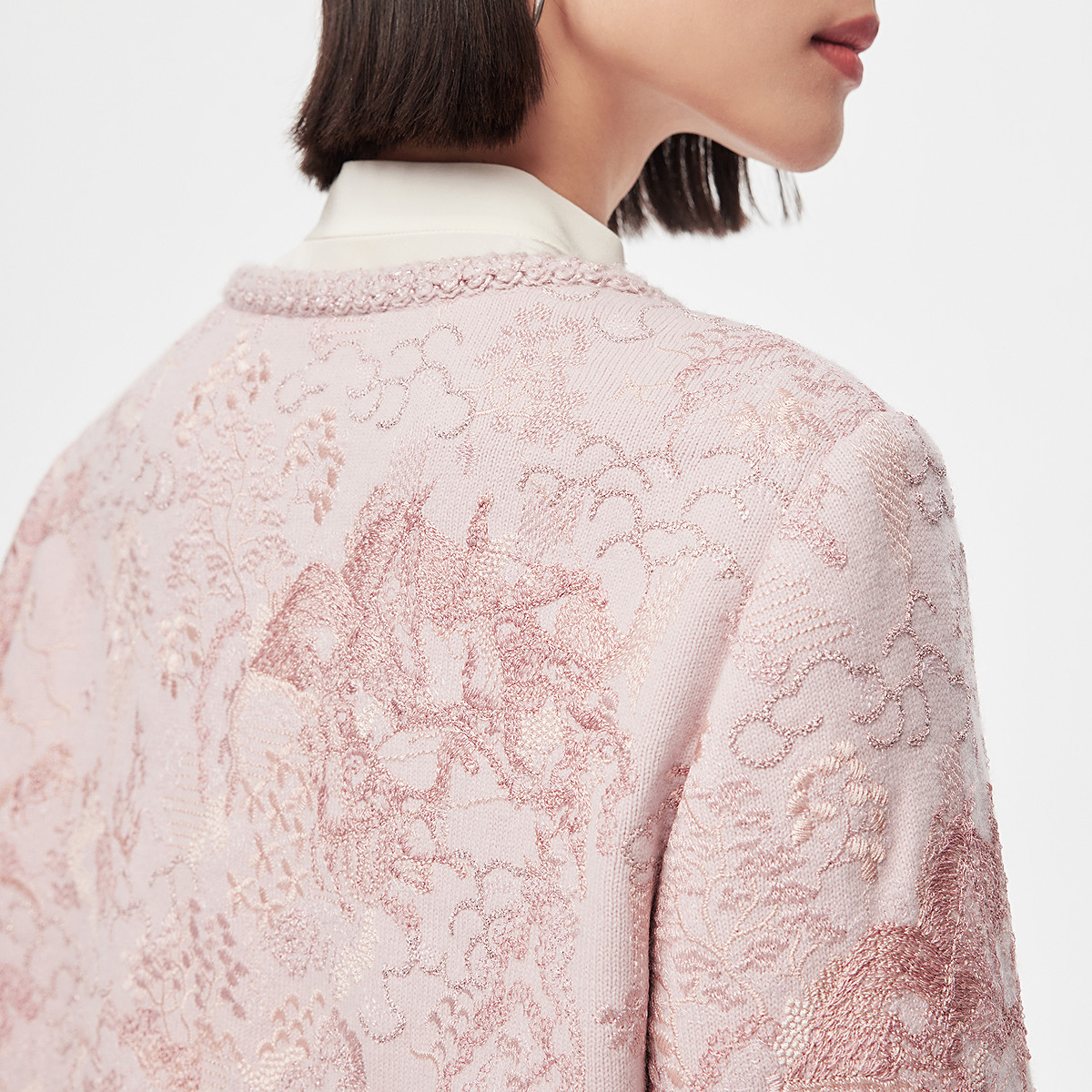 📚 【马上有戏】VGRASS26早春新款重工刺绣款粉红色绵羊毛针织开衫女