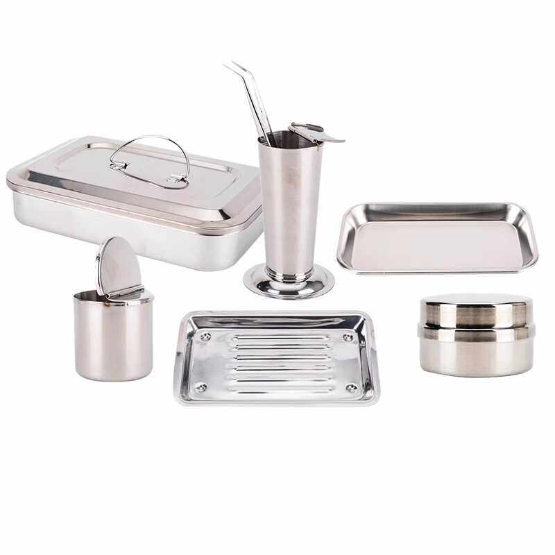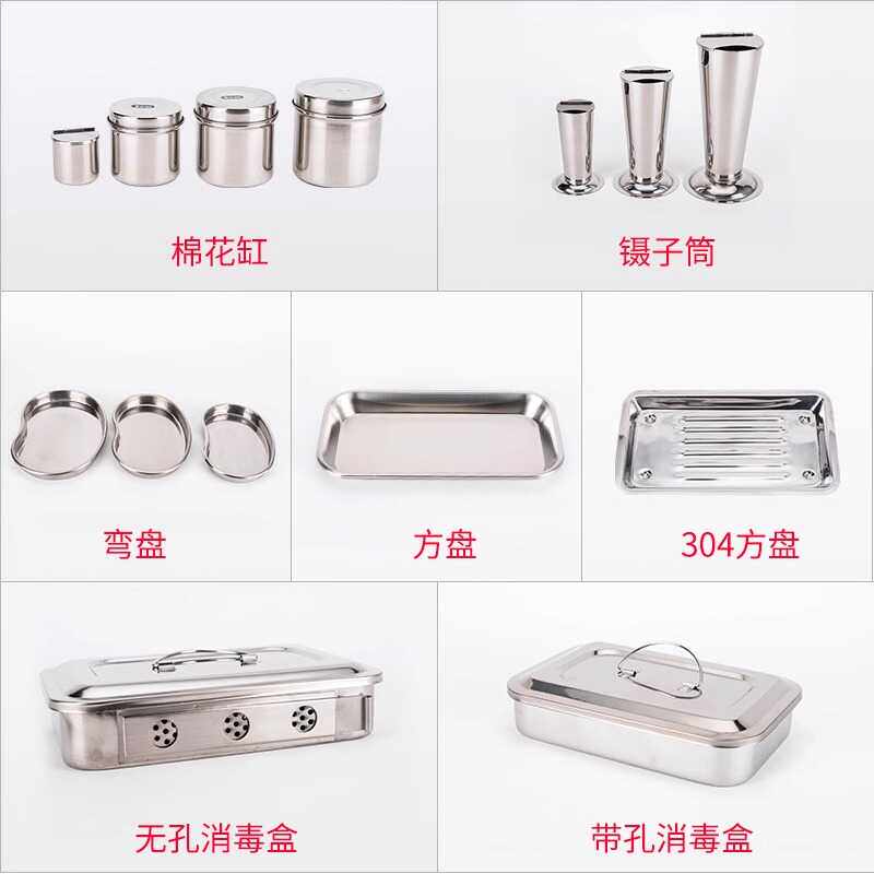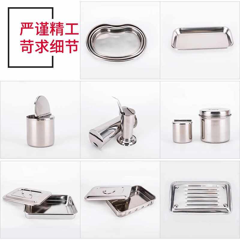 📚 牙科304不锈钢方盘托盘器械消毒腰盘消毒盘弯盘口腔镊子筒棉花缸
