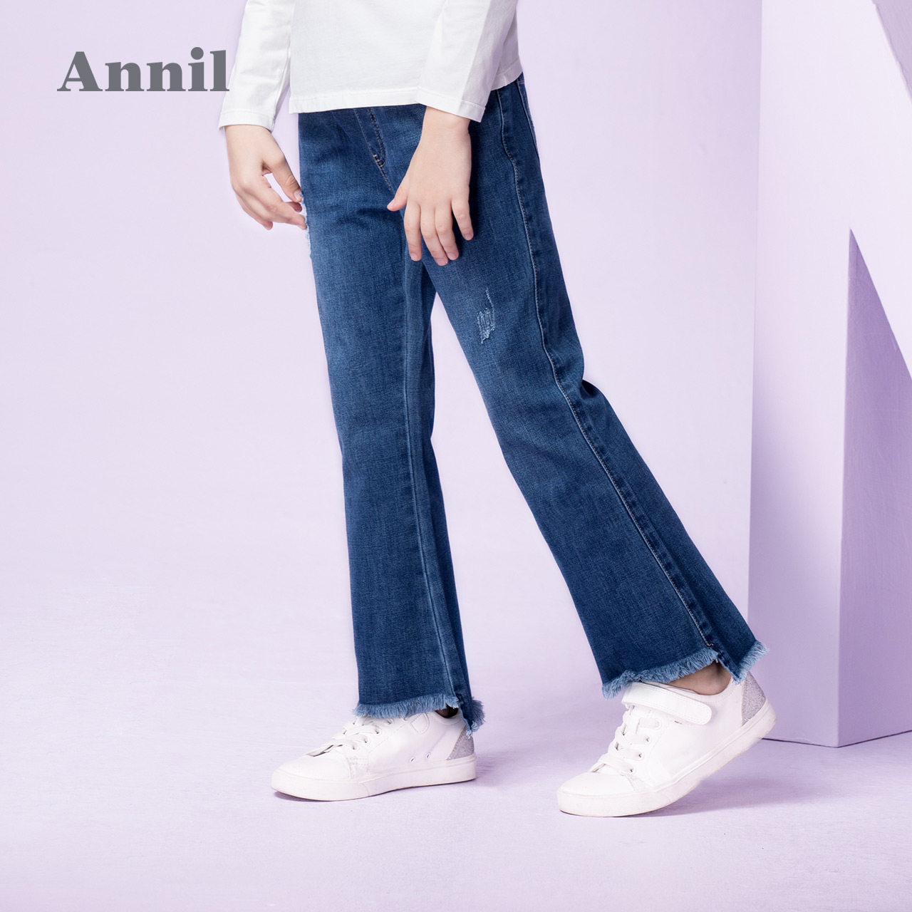📚 安奈儿童装女童毛边喇叭牛仔长裤2025春秋韩版学生薄单裤显瘦洋气