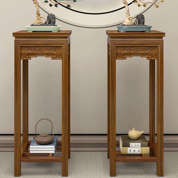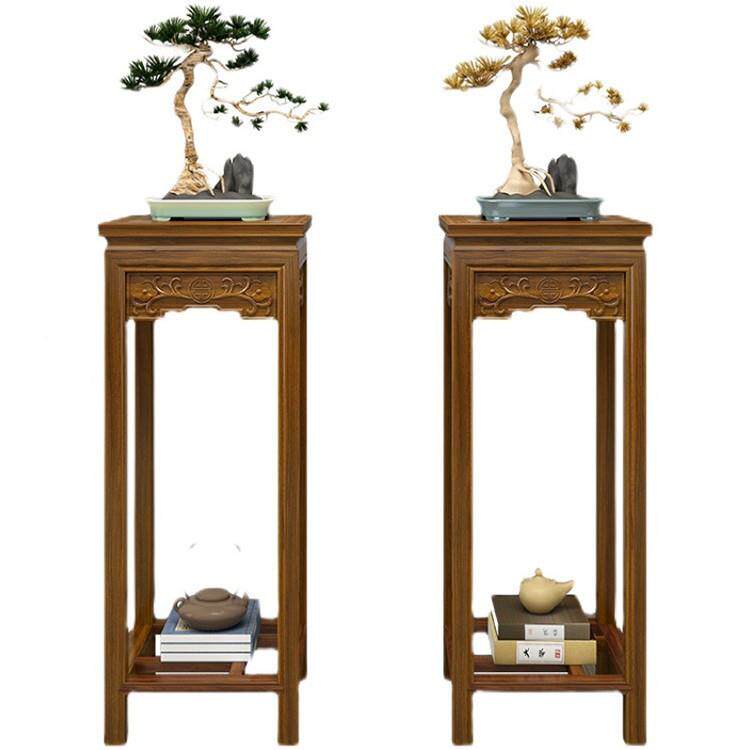 📚 新中式南榆木花架全木置物简QML架阳实台置物盆景架现约代客厅家
