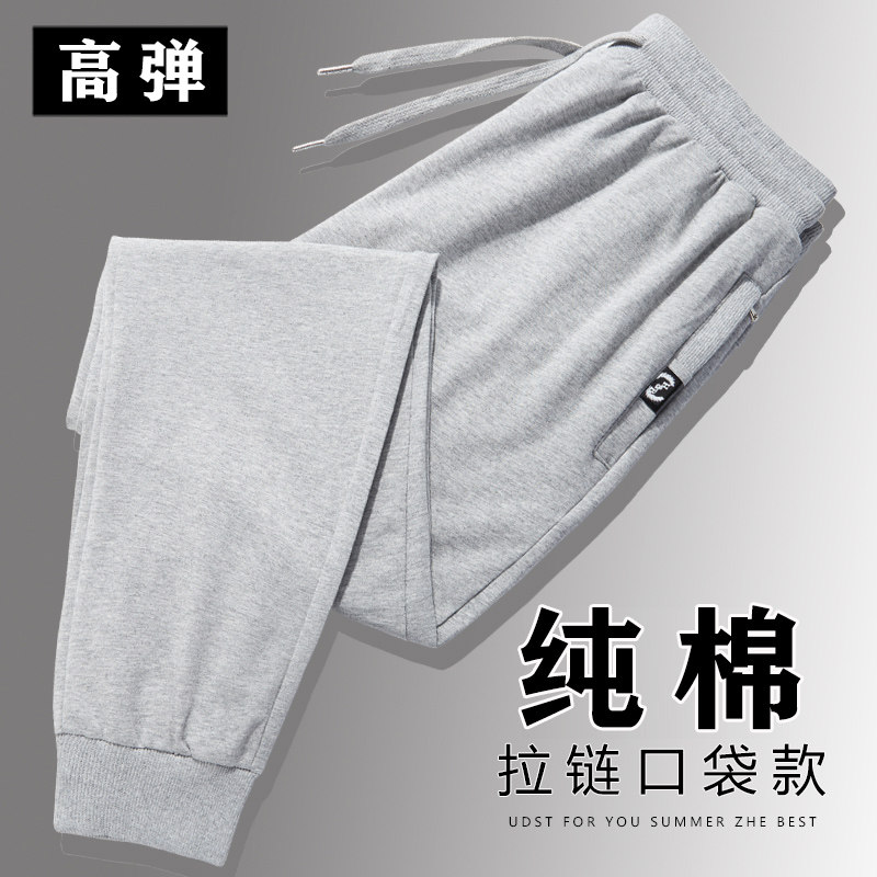 📚 春秋款纯棉运动裤男士休闲长裤子棉质宽松收口针织卫裤夏季薄款