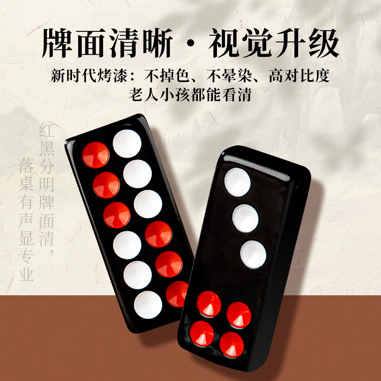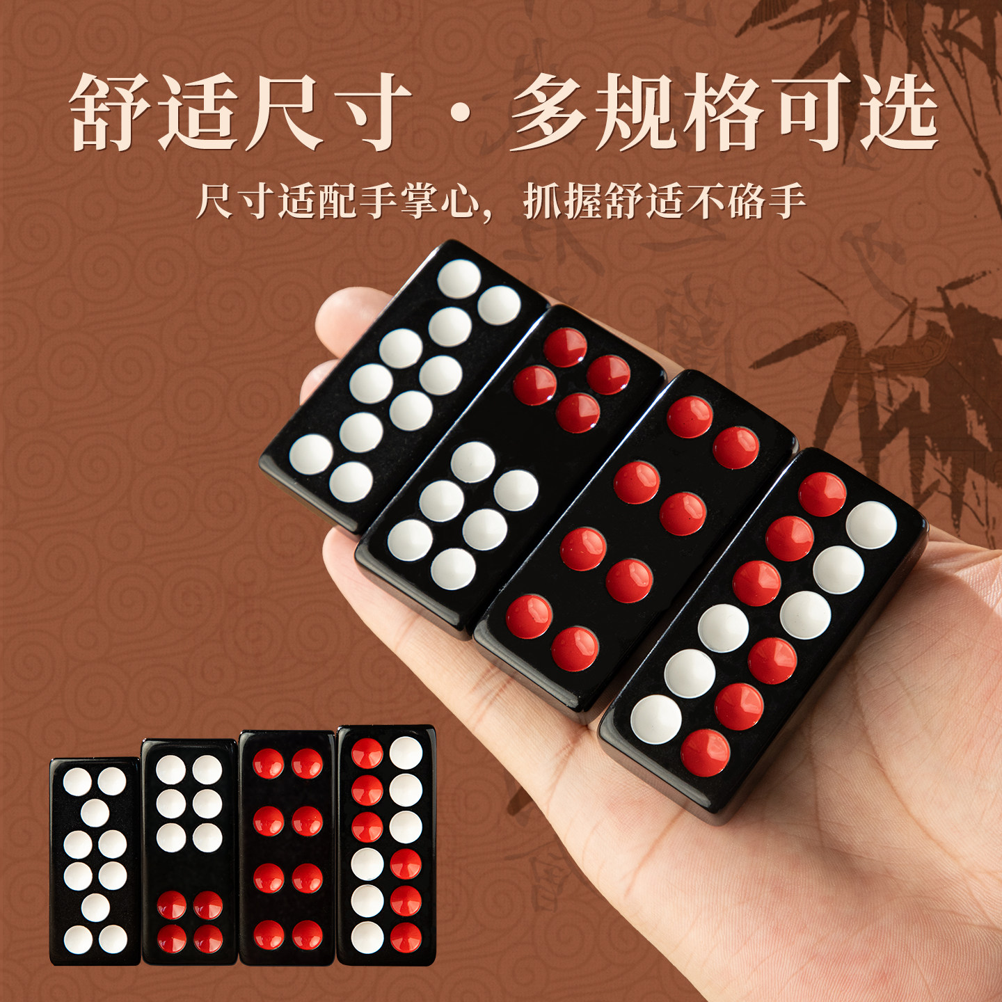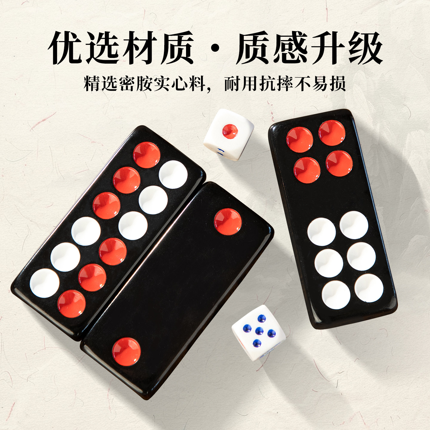 📚 牌九骨牌家用推排九天九四色牌老人成人长牌大号加厚黑色骨牌32张