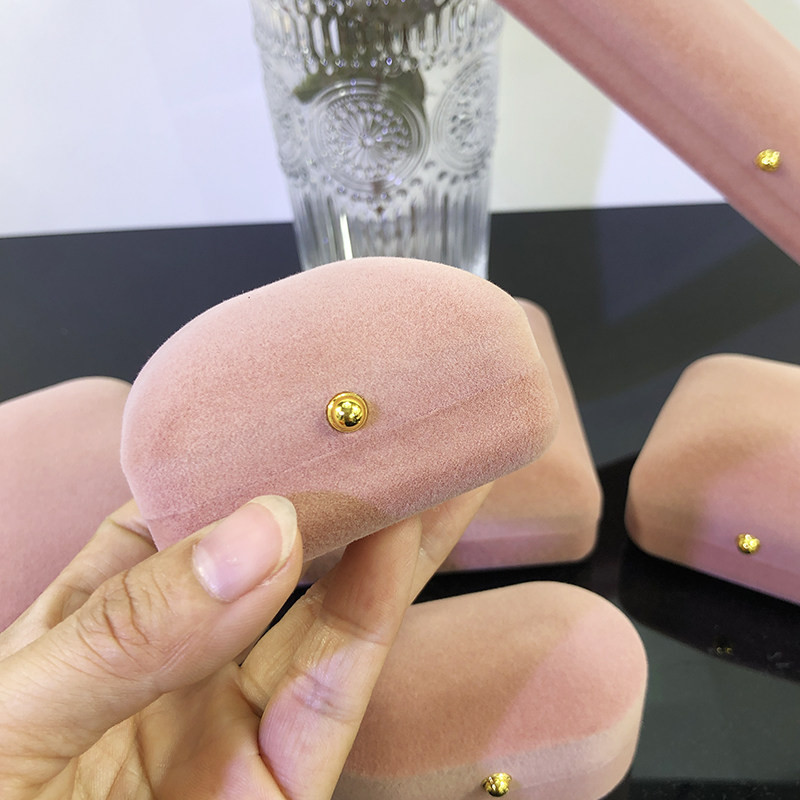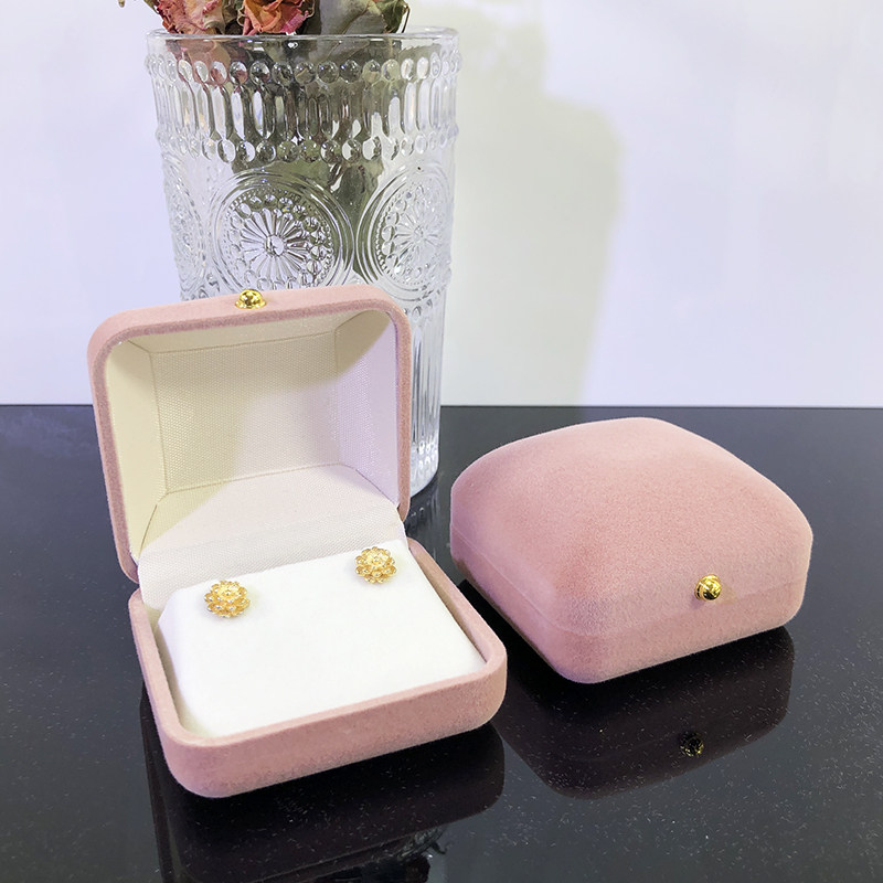 📚 新款植绒金扣首饰盒高档粉色对戒耳钉手镯饰品包装收纳盒节日送礼