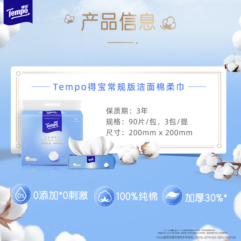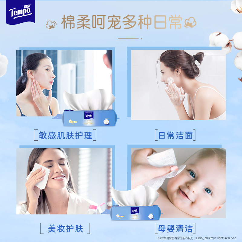 📚 Tempo得宝洗脸巾悬挂抽取纯棉干湿两用洁面巾家庭囤货90抽任选by