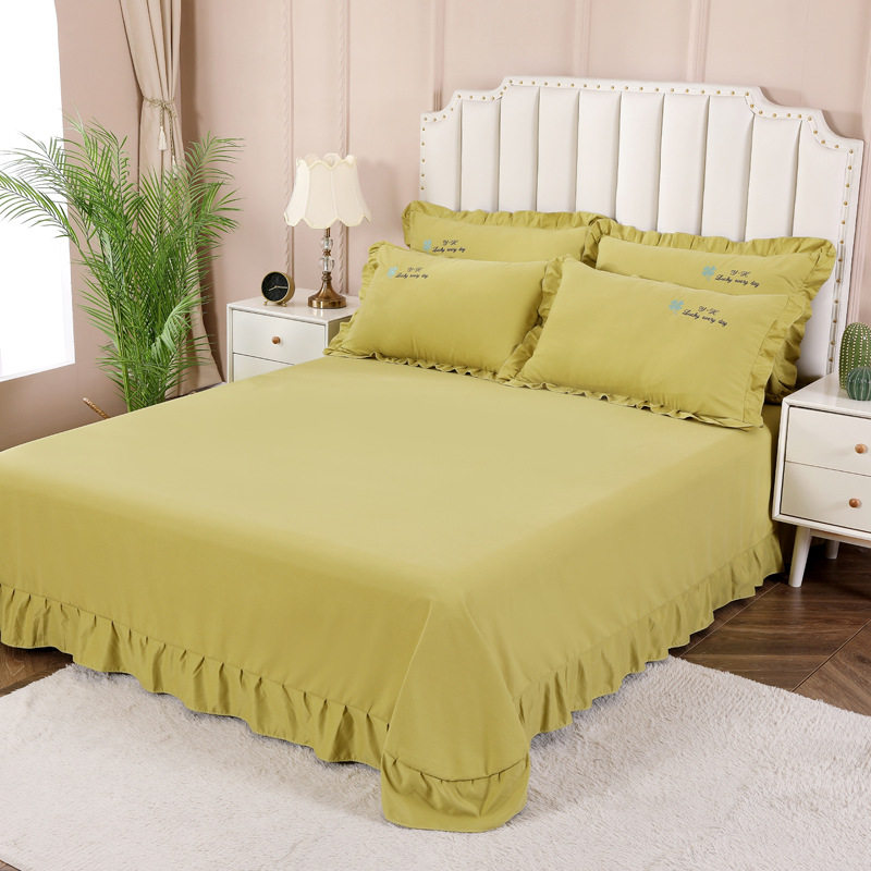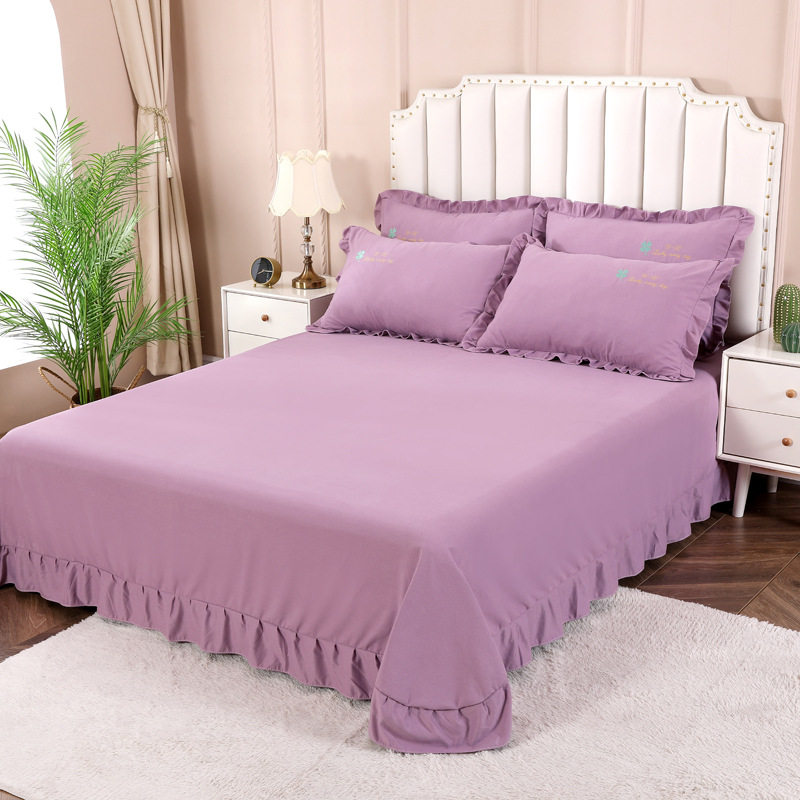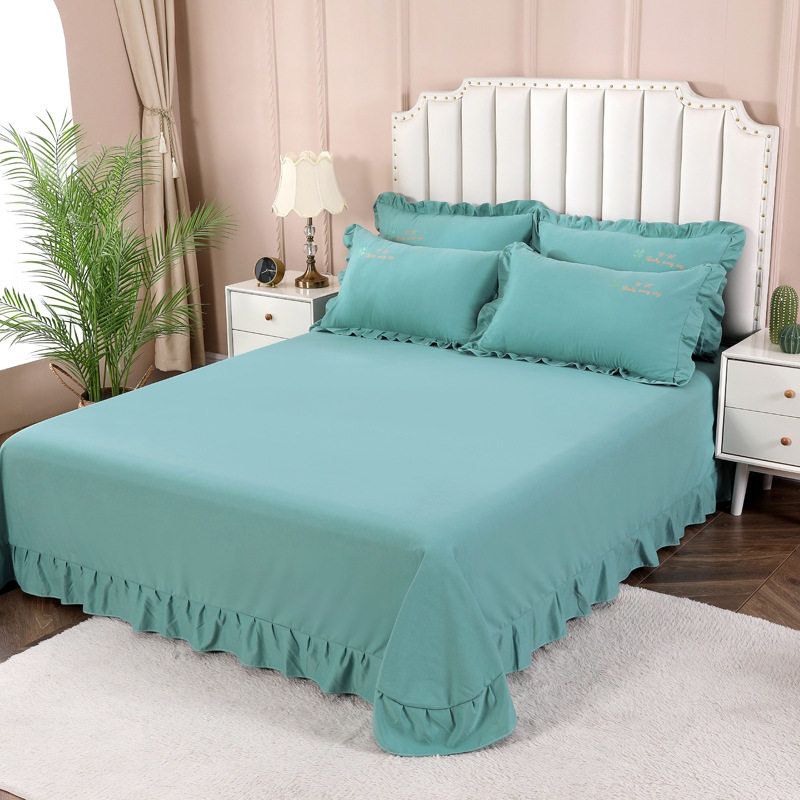 📚 全棉磨毛床单单件加厚保暖1.5m1.8m2m床纯棉荷叶边被单枕套三件套