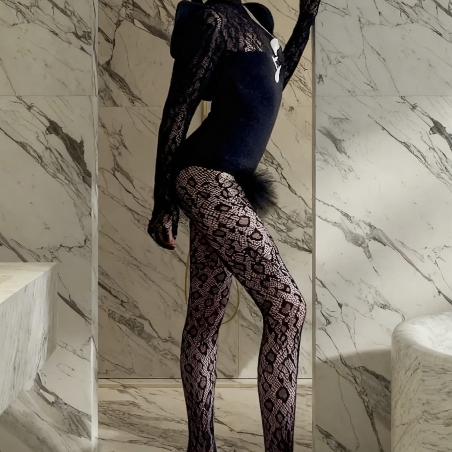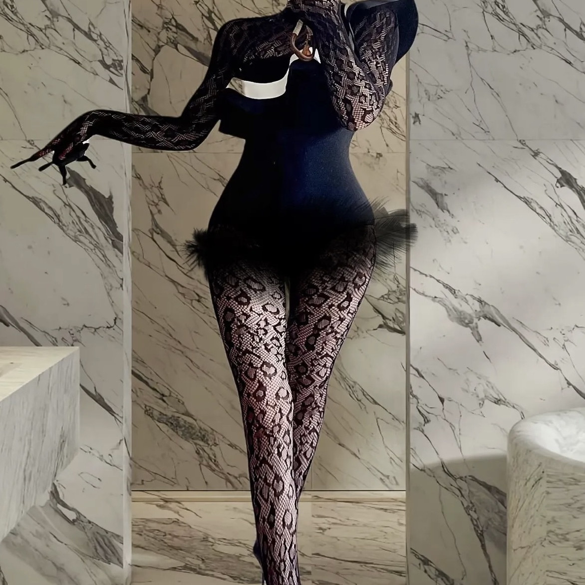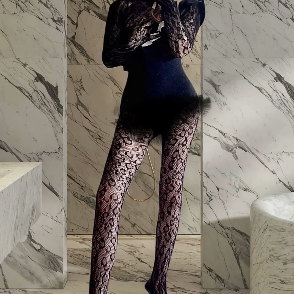 📚 欧美个性复古豹纹连身丝袜女薄性感黑丝手套一体连体袜女装穿搭