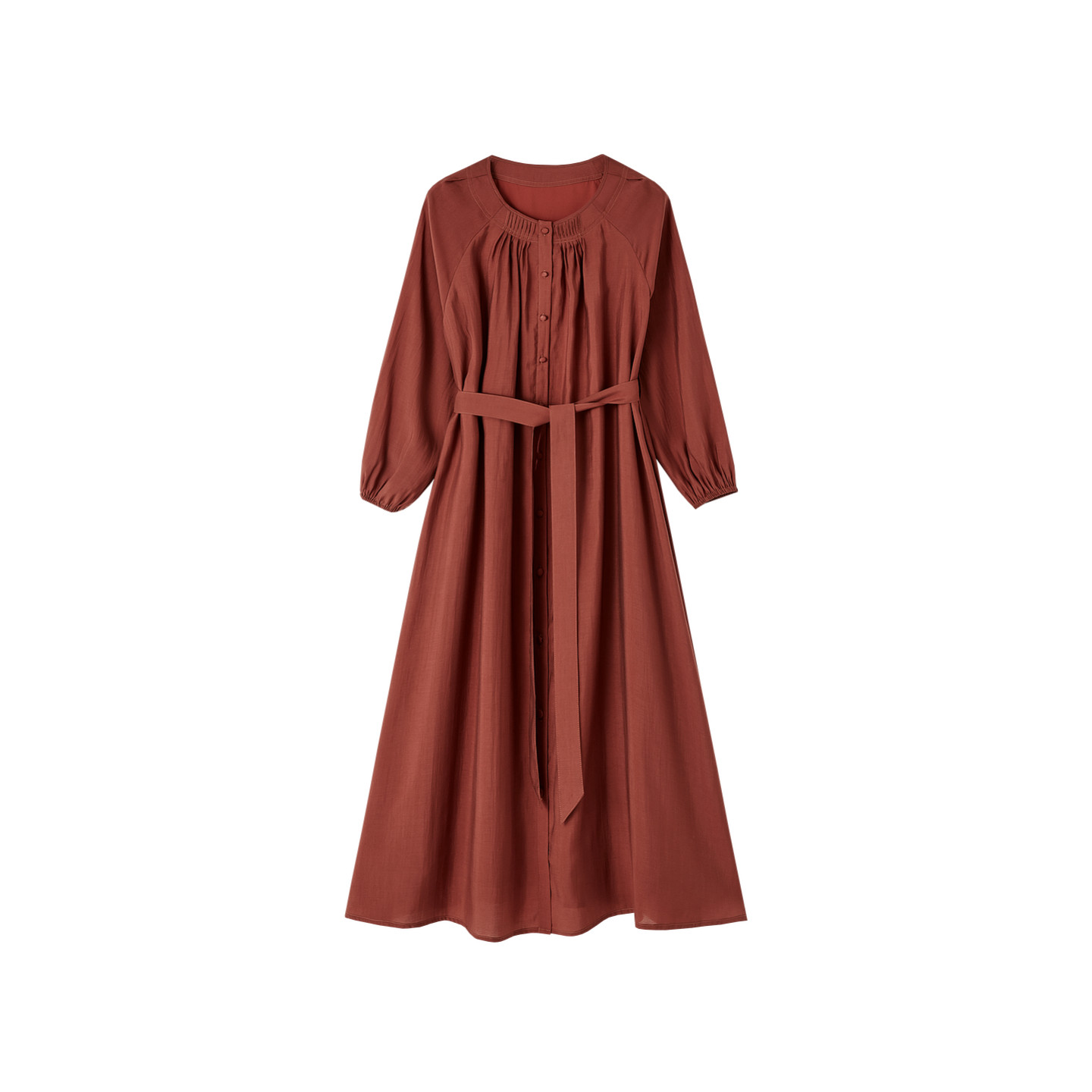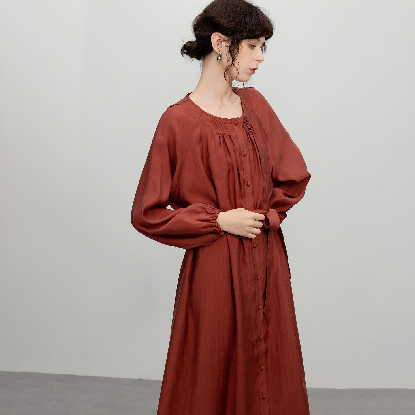 褶裥摆式系带圆领连衣裙