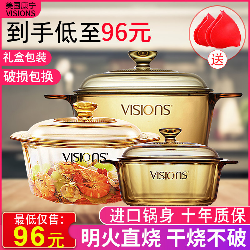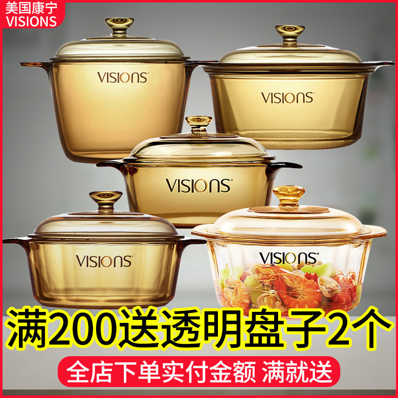 📚 美国康宁锅VISIONS晶彩透明锅耐高温玻璃锅1.25/3/3.5L奶锅琥珀锅