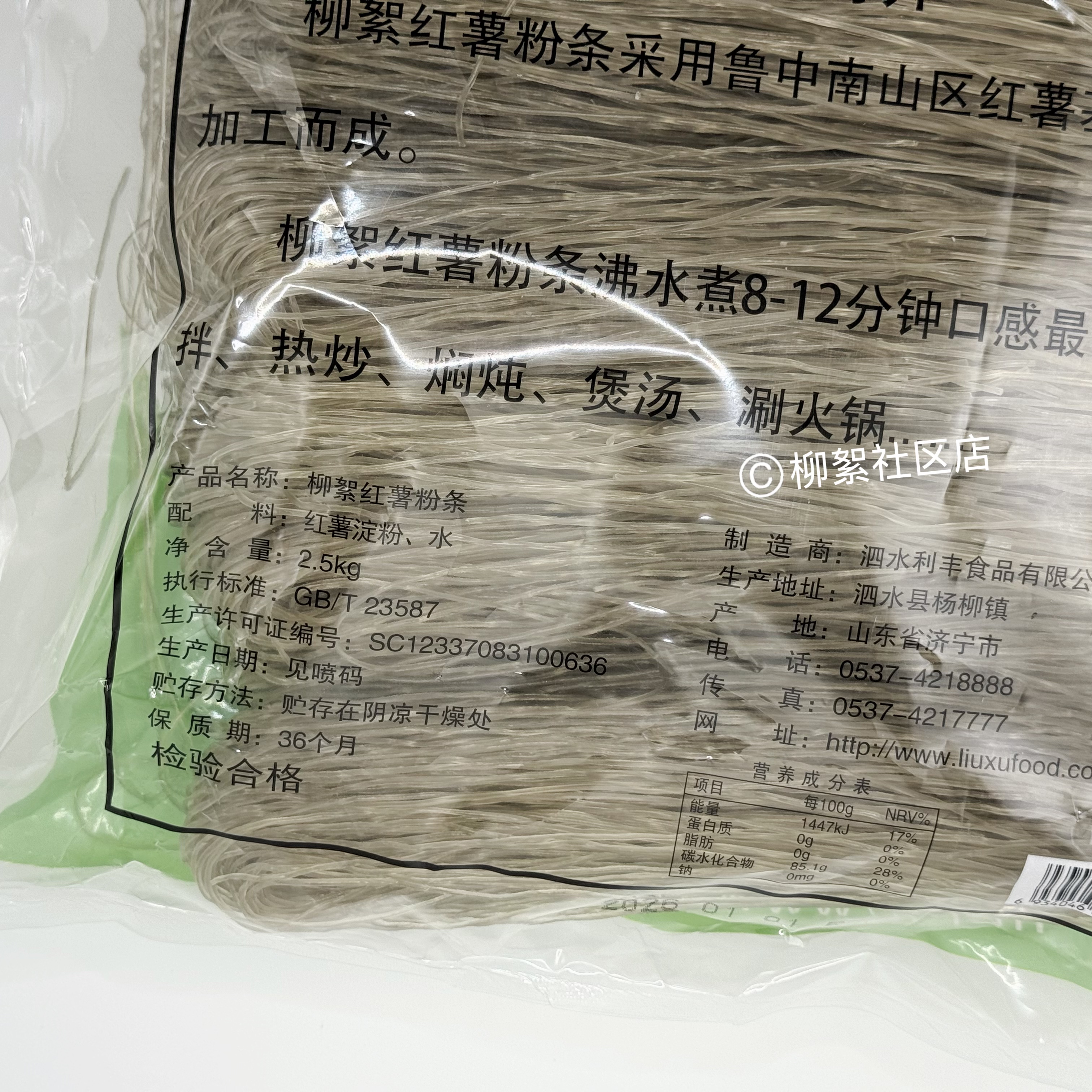📚 柳絮社区店山东济宁泗水柳絮红薯粉条5斤袋耐煮纯红薯地瓜细粉条