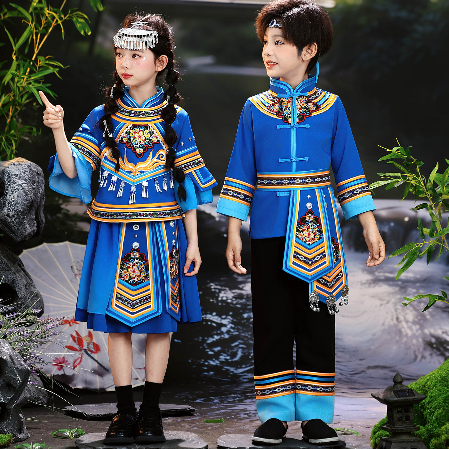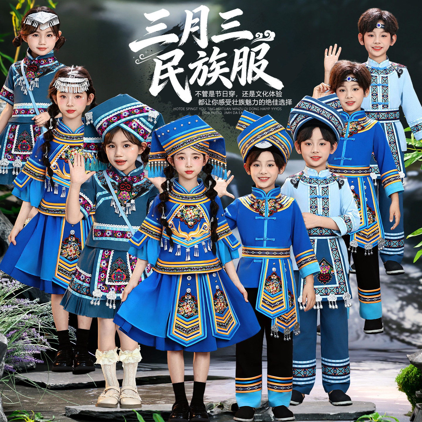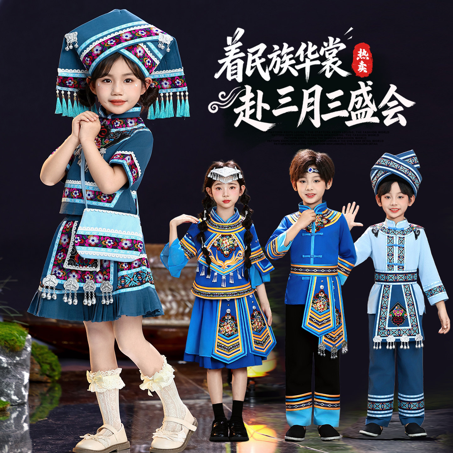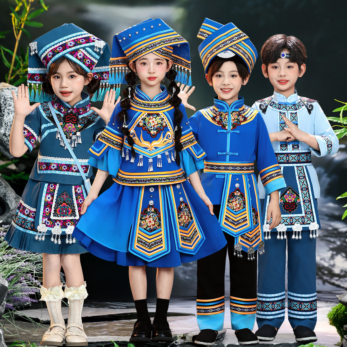 📚 儿童广西壮族三月三服装少数民族土家族瑶族哈尼族演出服男女童