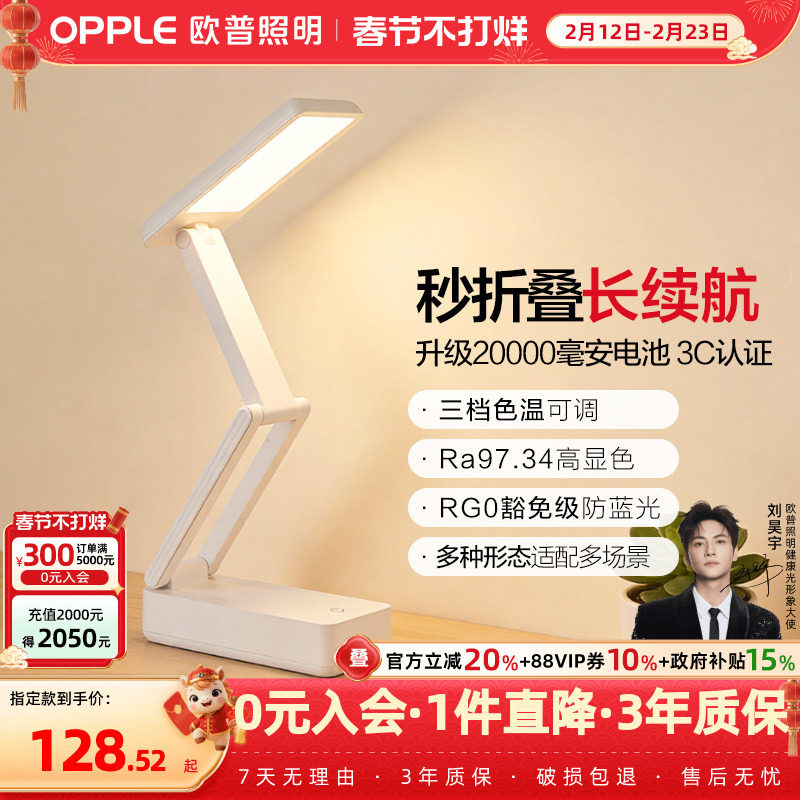 📚 欧普可充电款护眼学习专用台灯折叠便携宿舍床头长续航【3C认证】