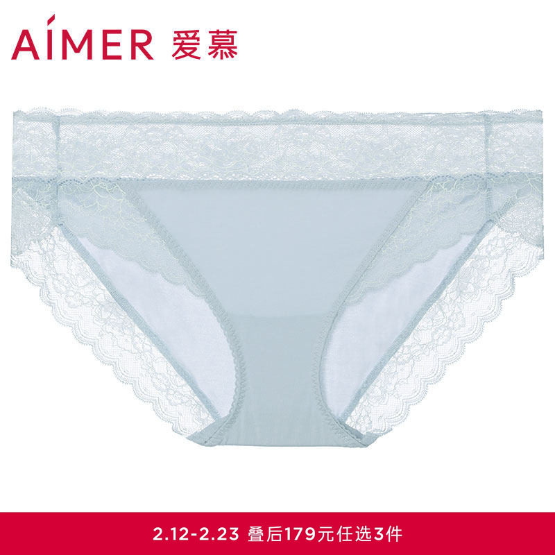 📚 3条179元|爱慕内裤女性感蕾丝棉底裆轻薄款透气纯色高低腰三角裤