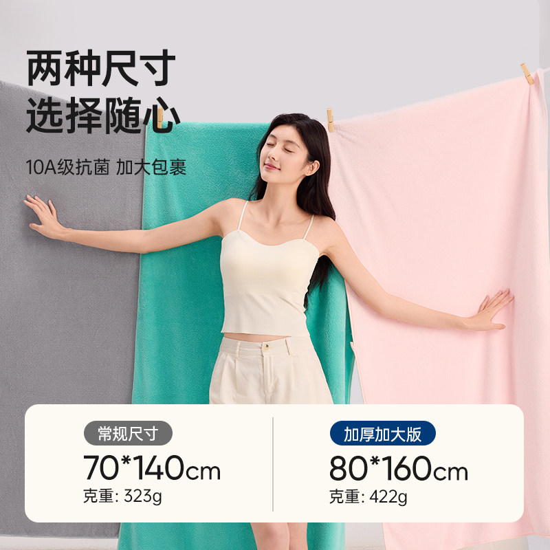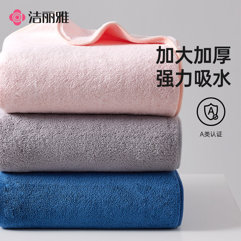 📚 洁丽雅纬编平纹浴巾加厚加大款抑菌高克重亲肤吸水柔软成人毛面巾