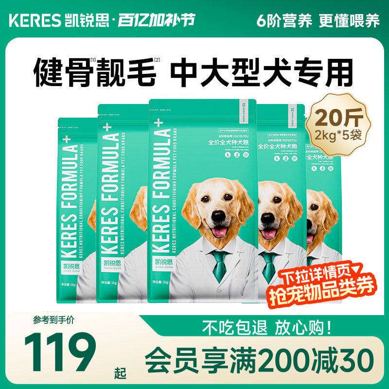 📚 凯锐思狗粮柯基边牧拉布拉多萨摩耶金毛柴犬中大型犬专用犬粮20斤