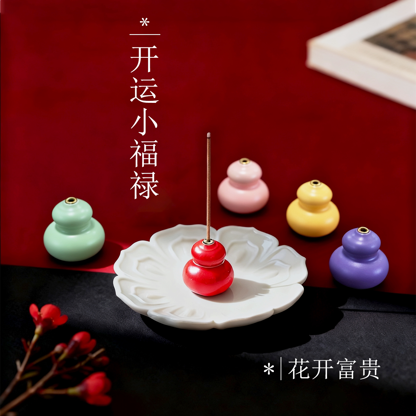 📚 陶瓷开运福禄葫芦香插 线香底座 香盘香托香薰香立檀香家居小摆件