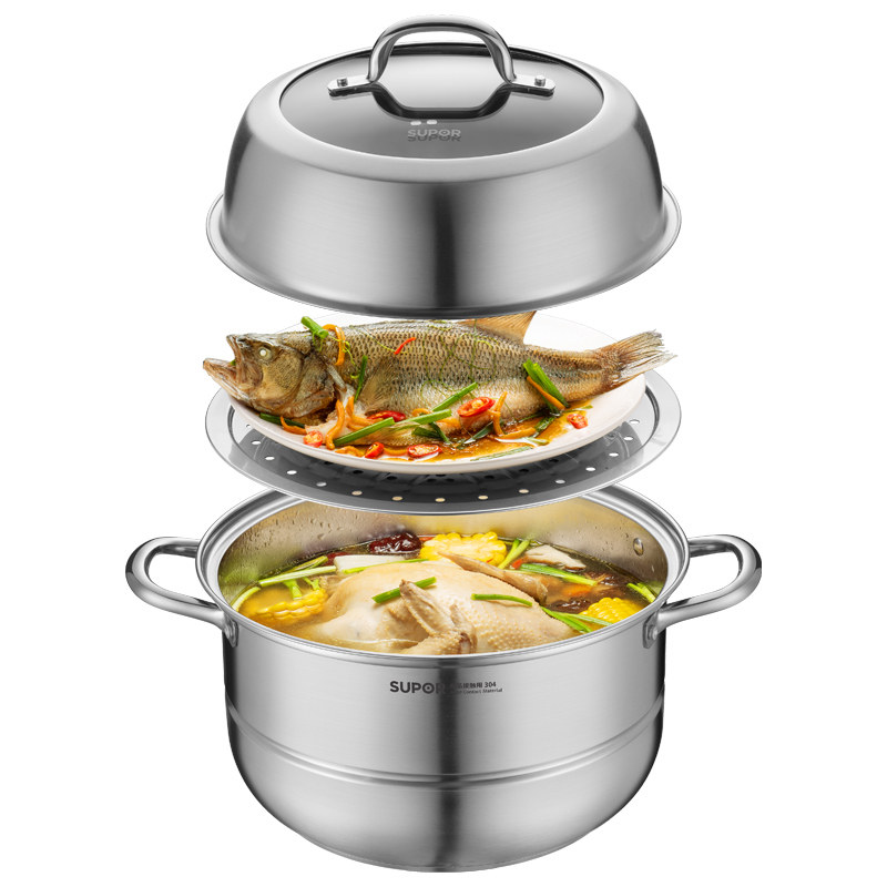 📚 苏泊尔304不锈钢蒸锅多层蒸煮炖家用蒸鱼蒸包子电磁炉燃气灶专用