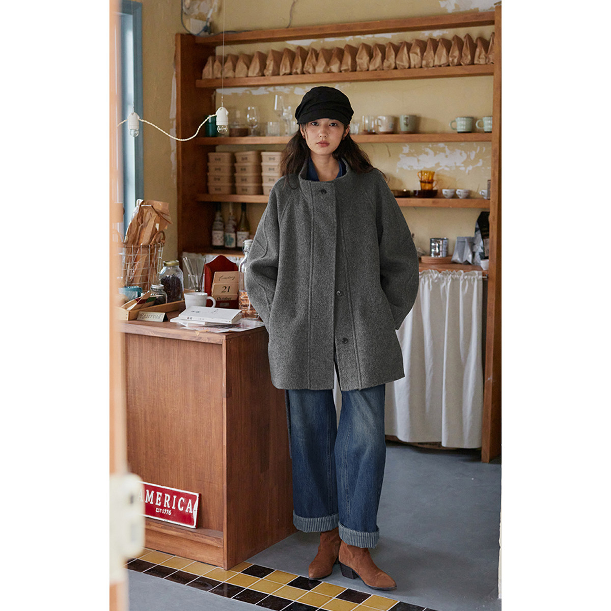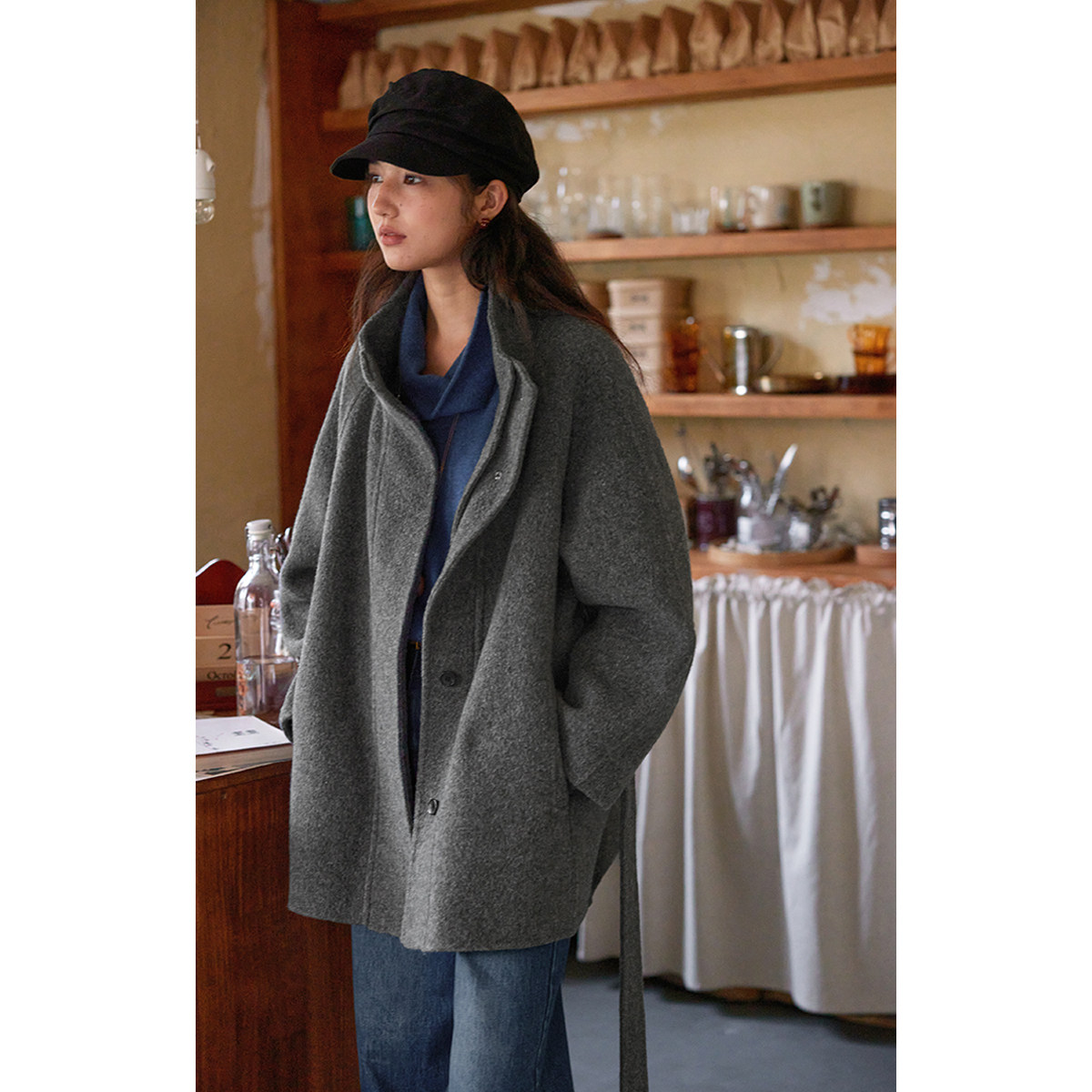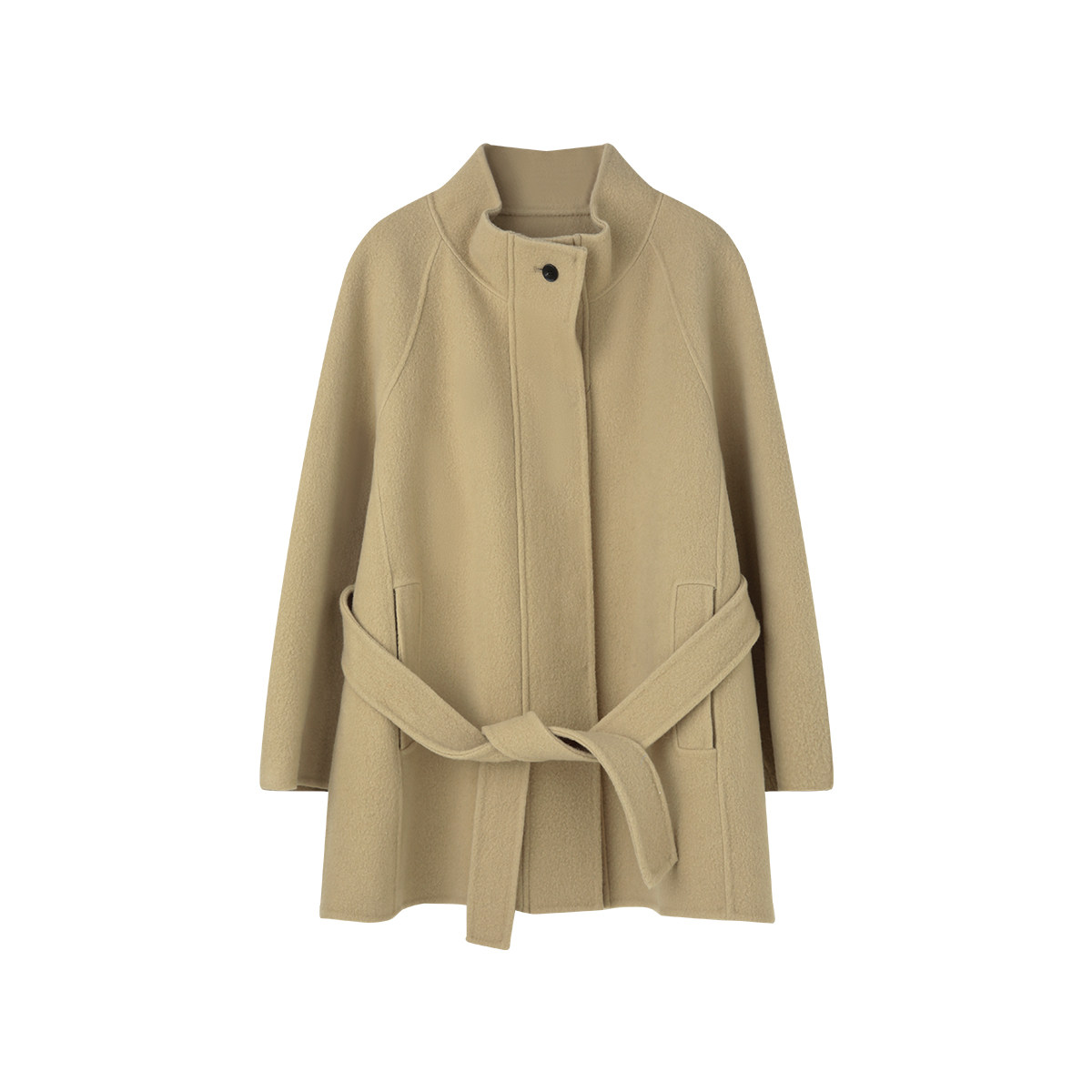 📚 solighter 100%羊毛假两件中长款收腰大衣女秋冬新款立领毛呢外套
