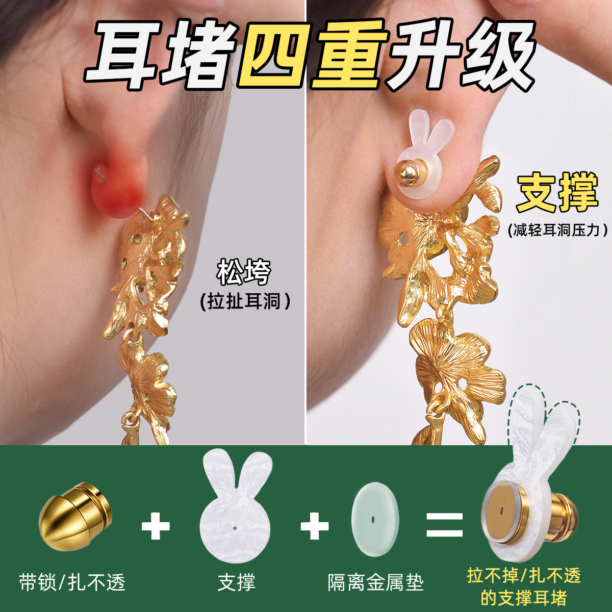 #耳饰神器 #拉不掉的耳堵 #防掉效果 #专业支撑 #洗睡免摘 #黄金耳饰 #好物分享