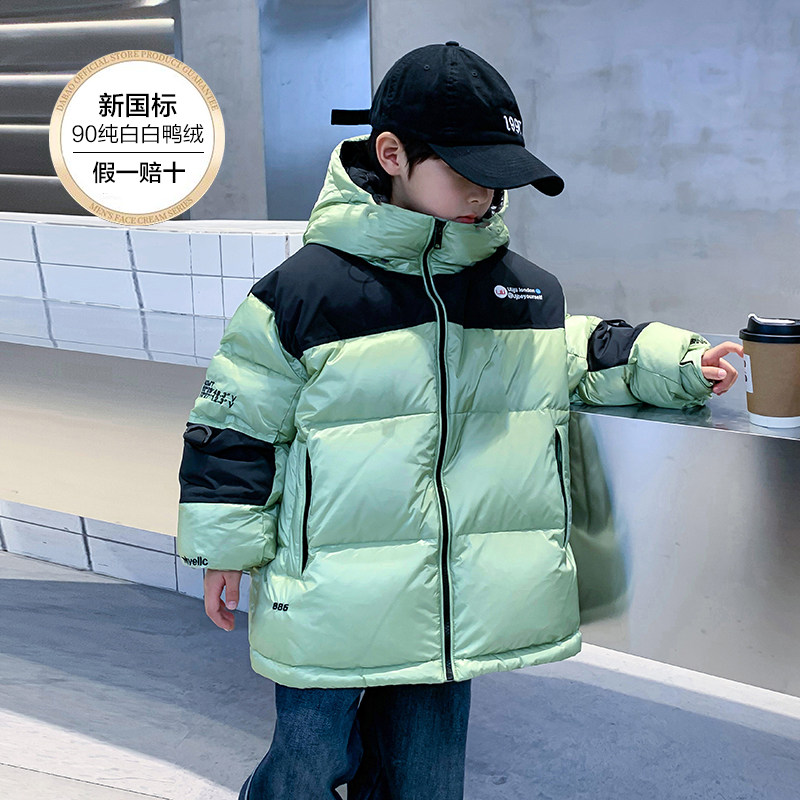 📚 男童黑色连帽免洗羽绒服2025新款儿童加厚冬装男孩冬季帅气外套潮
