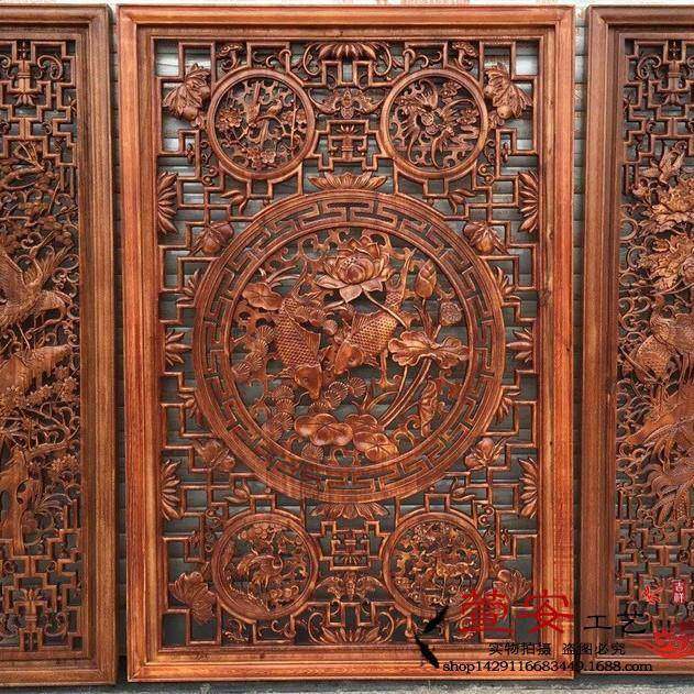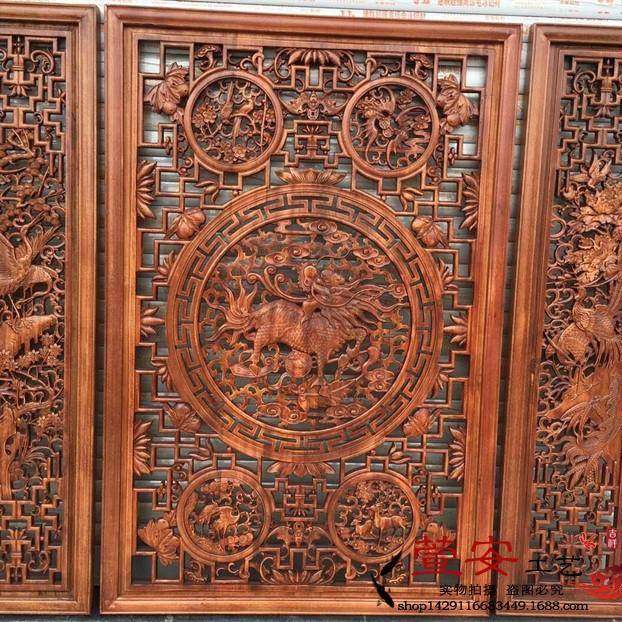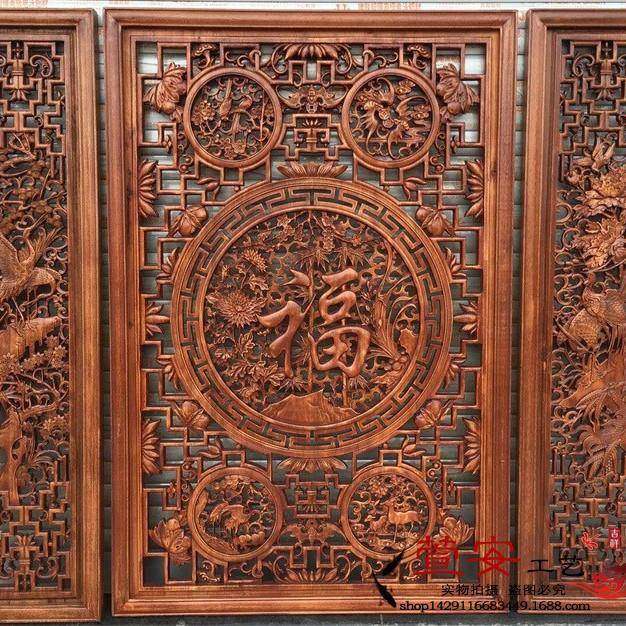 📚 东阳木雕中堂三件套香樟木挂条屏电视景墙实木木雕挂件福气满满