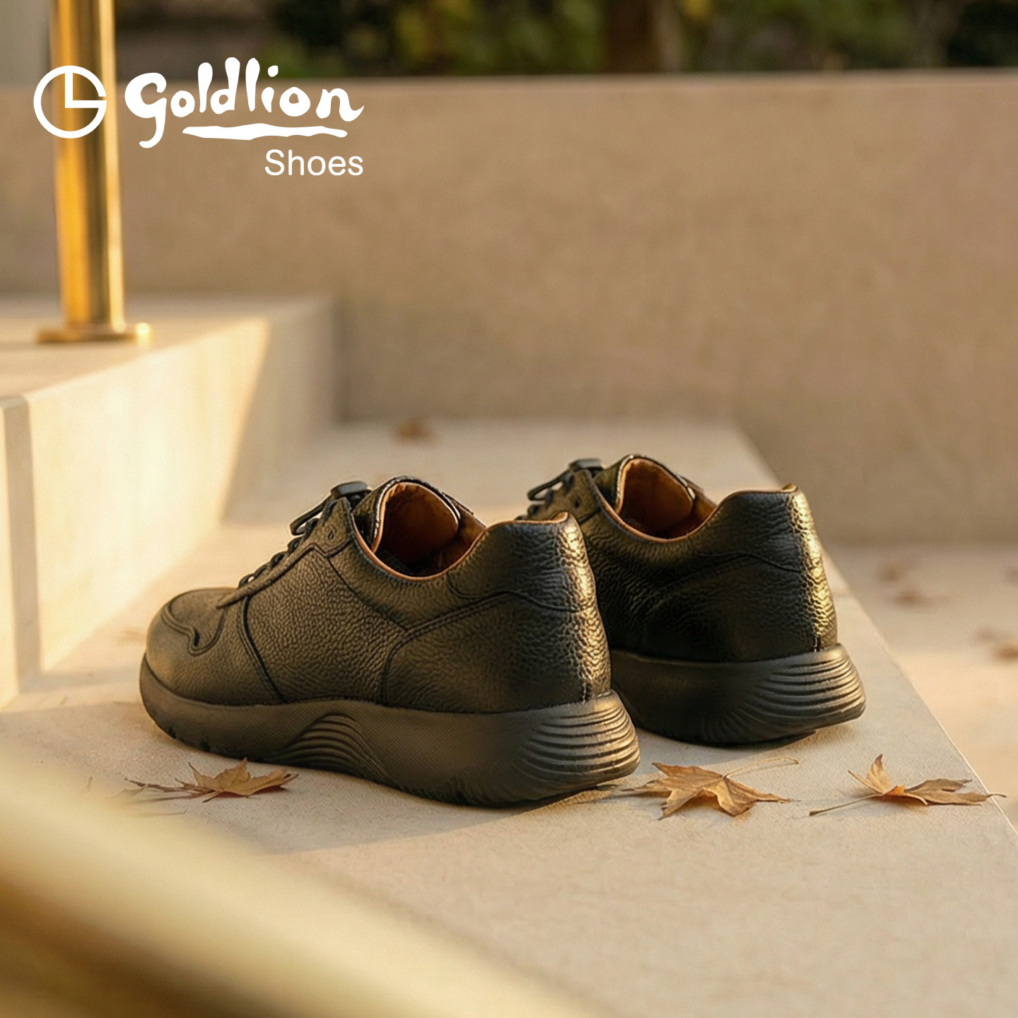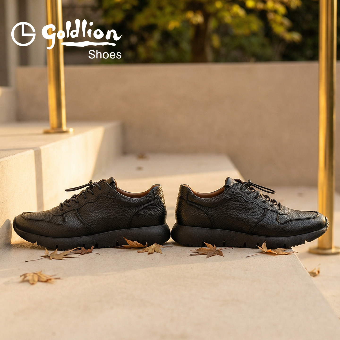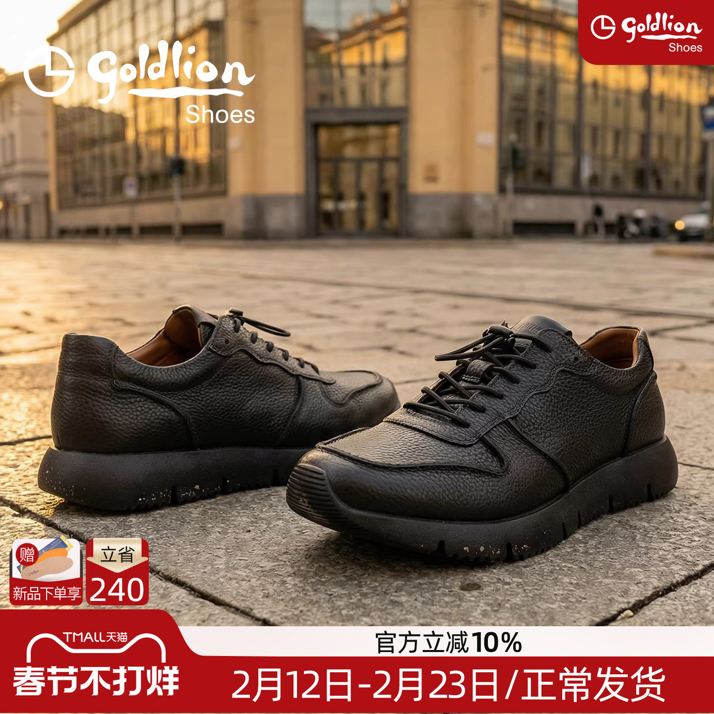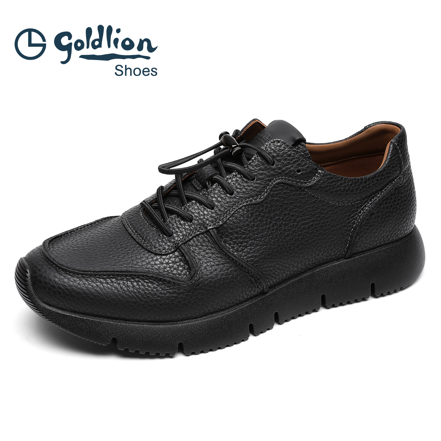 📚 Goldlion男鞋2026春新款黑色真皮运动舒适百搭轻便厚底户外休闲鞋